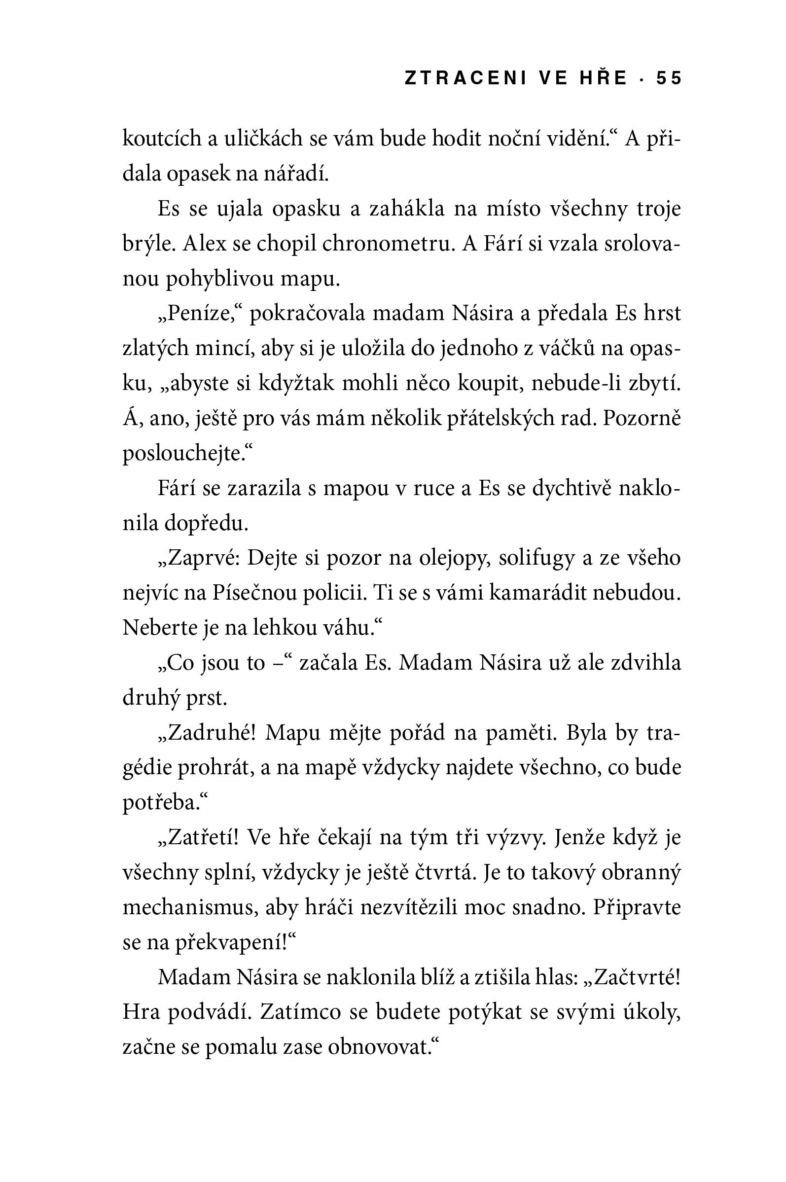 Když dvanáctiletá Fárí poprvé spatřila starožitnou dřevěnou krabici s neznámou hrou uvnitř, netušila, že by mohla být nebezpečná. Dokonale zpracovaná hra, zdobená obrázky starých paláců, věží a mozaikových oken, za kterými se táhnou tajemné stíny tvorů ukrývajících se ve tmě, ji vábila dovnitř. Určitě ji nenapadlo, že by v ní hráči mohli zůstat uvězněni! Když se ale její neposedný bráška ztratí v kouzelném městě, nezbývá jí a jejím dvěma kamarádům nic jiného, než začít hrát.