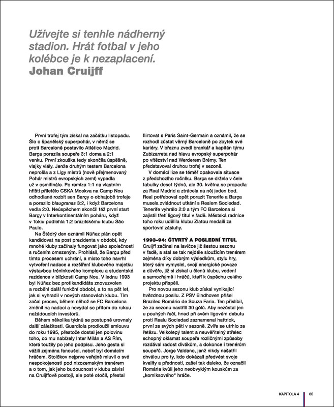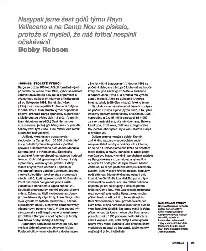 Barçu ve světě proslavili legendární hráči, kouzelná fotbalová filozofie a to, že je més que un club – víc než klub. Tato oficiální publikace zachycuje stoletý odkaz klubu, zaznamenává historii a triumfy této celosvětově proslulé sportovní instituce.