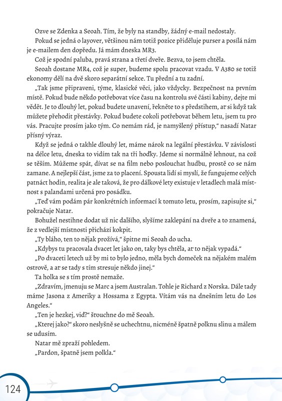Chcete vědět, jak se žije české holce v Dubaji, jak je těžké dostat "práci snů" a proč si v Číně neobjednávat pizzu? Jste zvědaví, jaké to je pracovat pro jednu z největších leteckých společností Blízkého východu, měsíčně navštívit pět kontinentů a dostávat za to výplatu? Nahlédněte za závěs kuchyňky a pod pokličku práce letušky. Ať už se rozhodujete, jestli je tahle práce to pravé, sníte o životě v oblacích, prostě vás jen zajímá, proč sakra při vašem letu došlo to kuře nebo co se může stát, když si nezapnete pás, je tahle knížka určena právě vám.