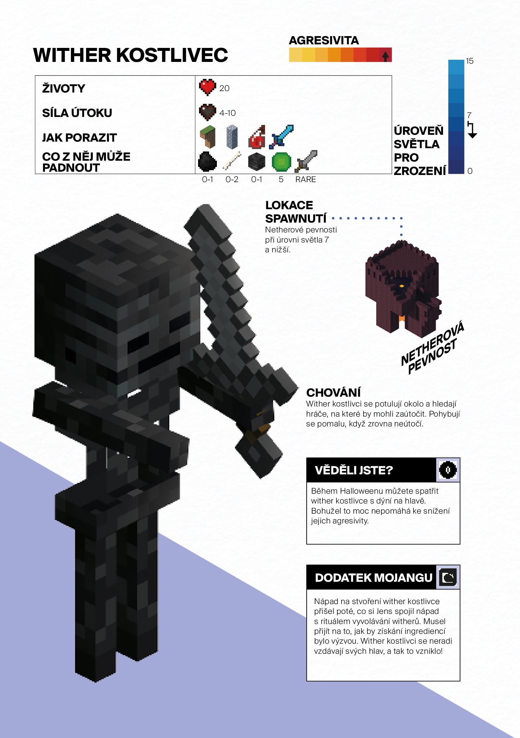 Přežít v dimenzích Netheru a Endu, to není jen tak. Pokud je vaším cílem návrat, budete se muset pořádně snažit. Oficiální Minecraft Průvodce světem Netheru a Endu vás naučí, jak se pohybovat cizím terénem, bojovat s místními příšerami a nacházet vzácné bloky a předměty. I díky mnoha doplňujícím informacím a tipům od expertů z Mojangu nepochybně jde o příručku nepostradatelnou k přežití v prostředí Netheru a Endu.