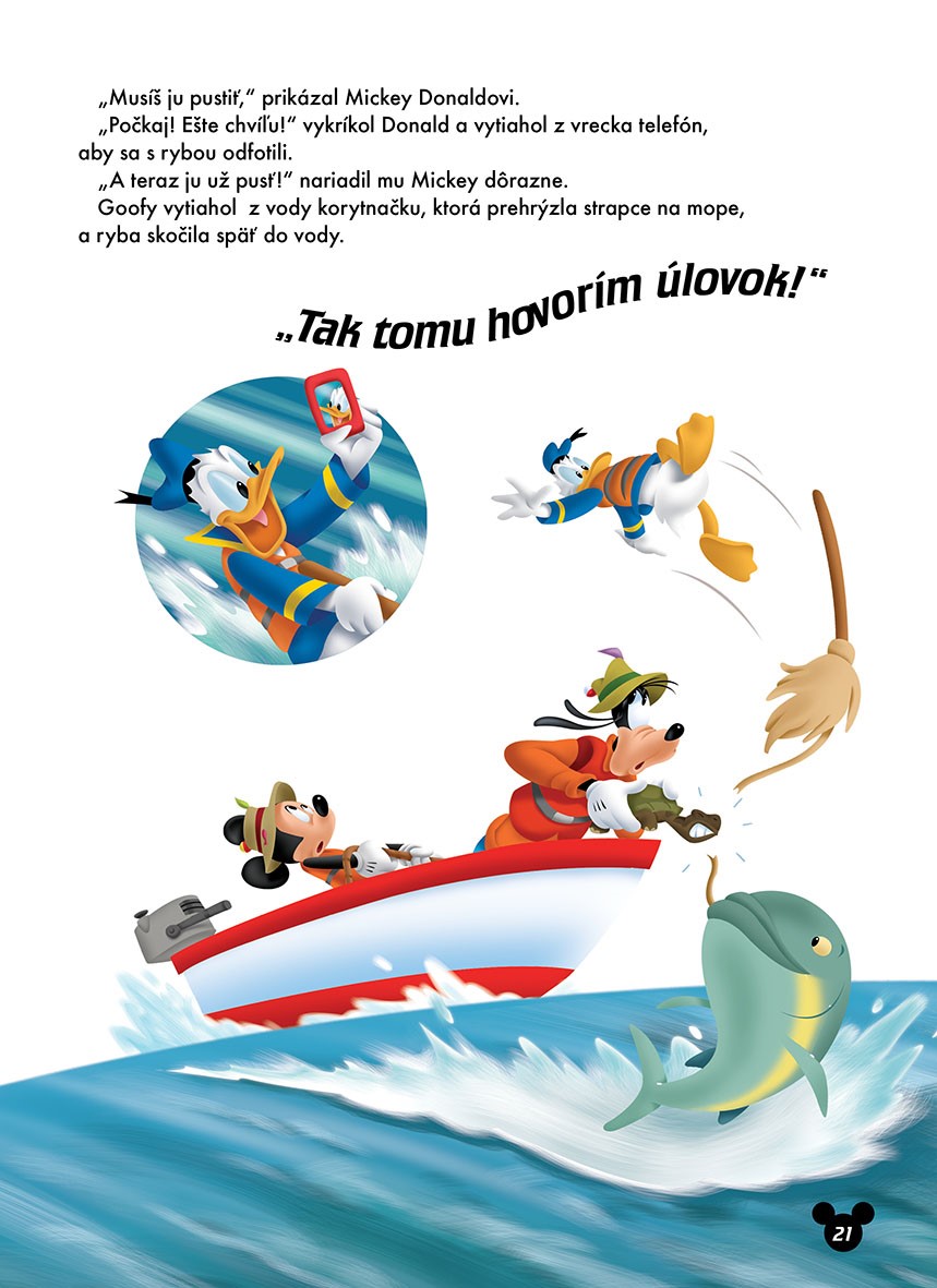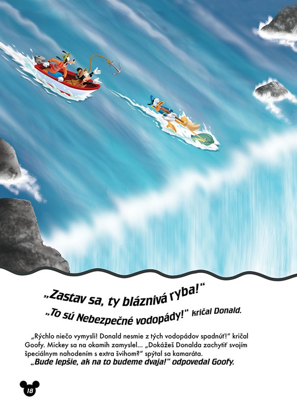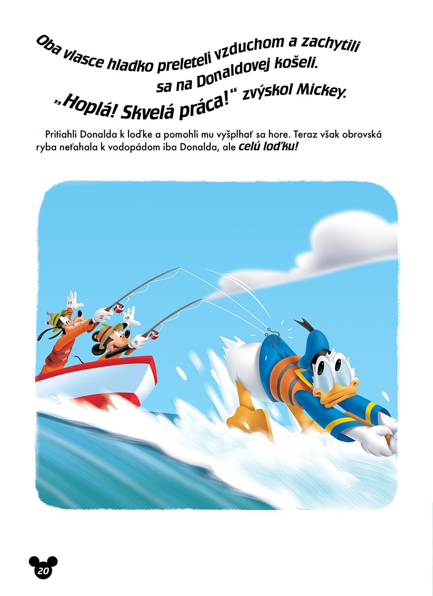 Mickey si s kamarátmi zriadil servis, v ktorom sa starajú o svoj celkom nový obojživelný kabriolet. Od dnešného dňa nesmie chýbať na žiadnom výlete! Nech sa už vypravia kamkoľvek, s novým kabrioletom vždy zažijú nevídané dobrodružstvá. Z pokojnej rybárskej výpravy sa stane nebezpečná záchranná operácia (zoberte si z Donalda príklad a nikdy nepodceňujte ani tú najmenšiu rybičku!) a Mickeyho plán na romantickú dovolenku v Madride sa celkom zmení, keď sa na scéne objaví malý býček! Bavte sa pri najnovších dobrodružstvách, ktoré zažil Mickey a jeho priatelia, nalepujte samolepky a vyfarbujte obrázky, bez ktorých by žiadny Mickeyho príbeh nebol úplný.