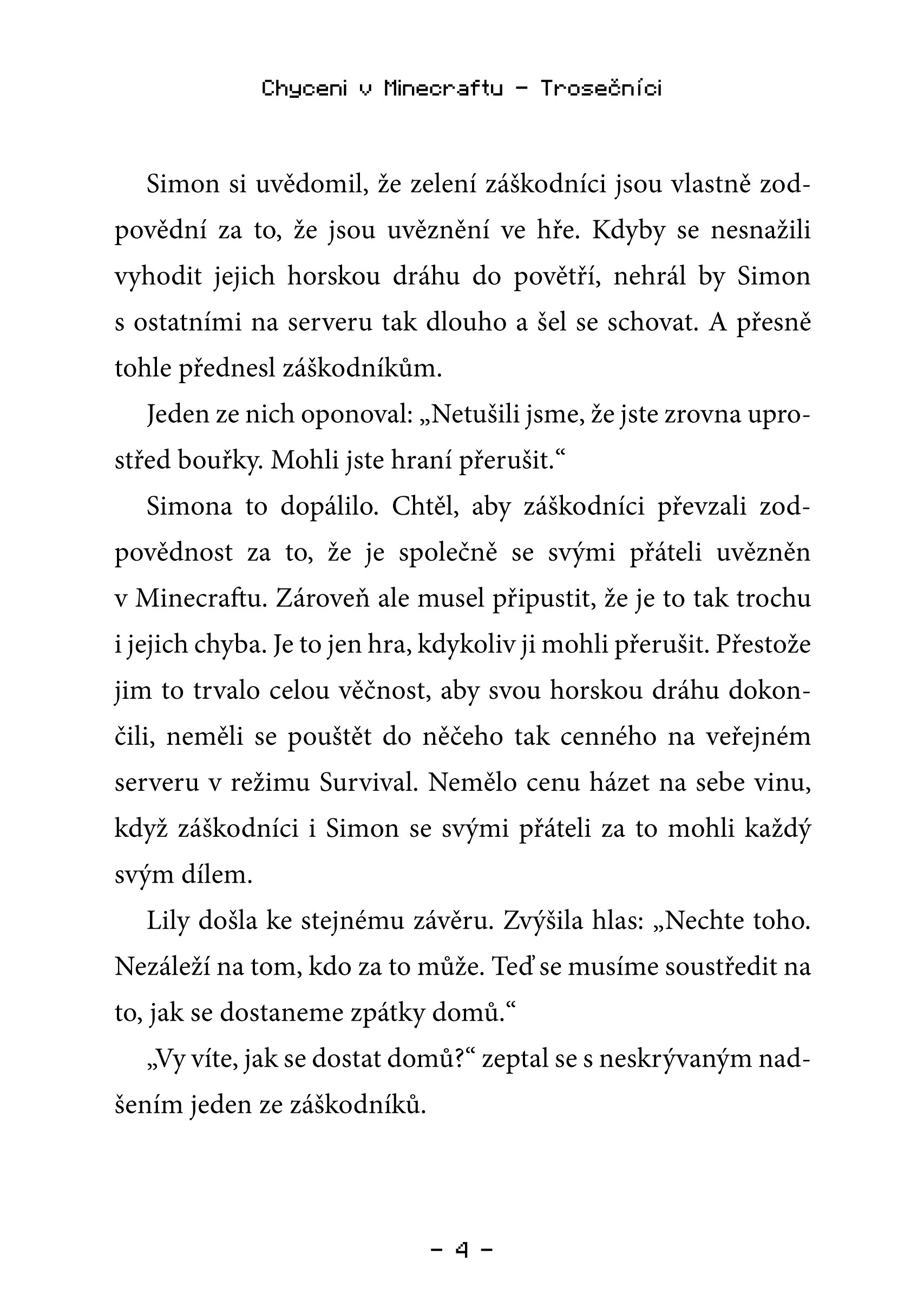 Ve čtvrtém pokračování minecraftího dobrodružství bude muset Steve řešit další zapeklitou situaci. Jednoho dne totiž zachytí volání o pomoc od svých přátel Maxe, Lusy a Henryho. Ti našli obří poklad v jednom z opuštěných chrámů, ale nemohou se z něj dostat ven! Steve neváhá a ihned se vydává na záchrannou výpravu do pouště. Jenže záchrana jeho přátel a získání pokladu nebudou tak jednoduché, jak si původně plánoval.