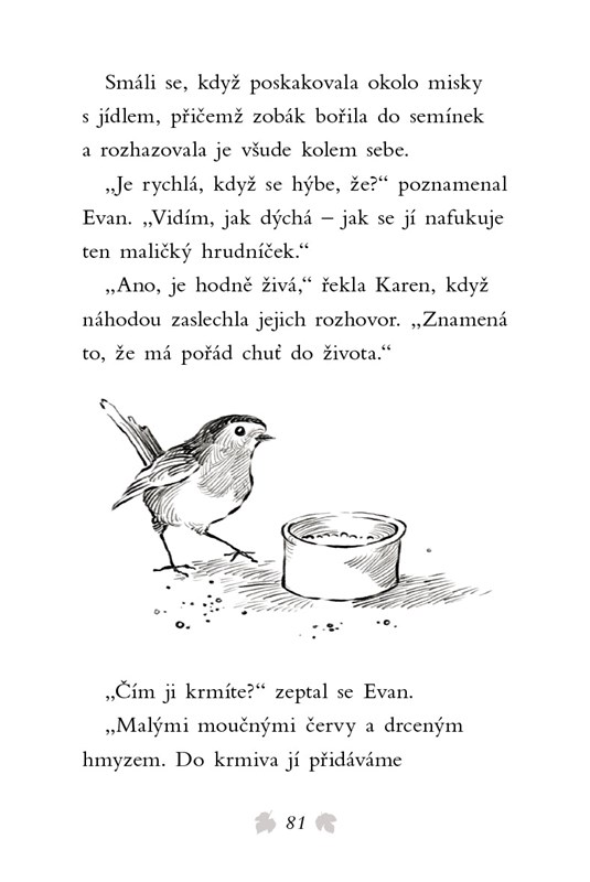 Evan s Hanou najdou ve sněhu promrzlou červenku. Chytila se do pasti a nemůže se hýbat. Hned zavolají na pomoc zvířecí záchranáře. Podaří se jim ptáčka vyprostit včas? Stále totiž velmi hustě chumelí a sněhu přibývá…
