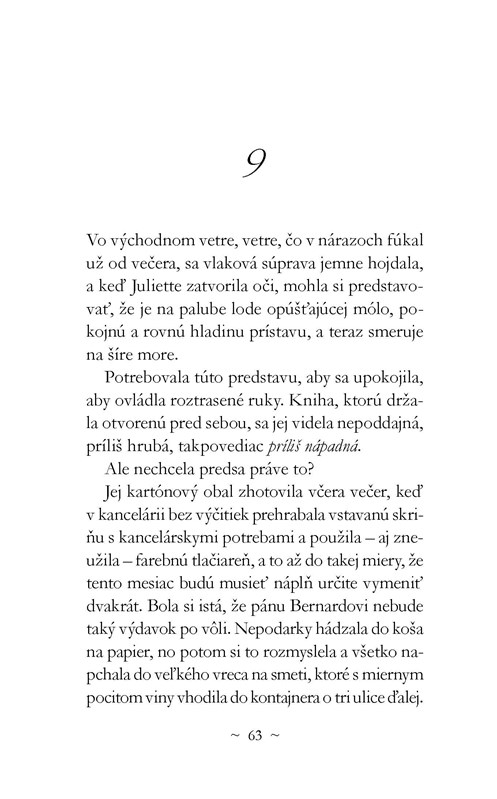 Muž v klobúku, ako ho Juliette v metre nazvala, vniesol do príbehu vážnosť a zároveň jemnosť, ktorá sa mi veľmi páčila. Povzbudzoval Juliette keď pochybovala a aj vďaka nemu si človek dokázal ýchlo uvedomiť, že niekoho takého by v živote mal mať každý. Dnešný svet je hrozne krutý, každý vám povie, na čo nemáte, čo nikdy nedosiahnete, avšak len skutočný priateľ, ktorý vás ani nemusí poznať, vás podporí, nech je váš sen akokoľvek šialený.