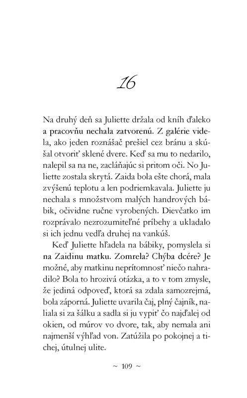 Juliette sa počas celej knihy učí, ako to v tomto funguje a je skvelé sledovať, čím všetkým si prejde. Pochybnosti, ktorým čelí, pochopenie, ktoré ju čaká... Nemyslela som si, že je možné nájsť toľko reality na tak málo stranách. Autorka si za tú "uveriteľnosť" istotne zaslúži veľkú pochvalu (a potom príde moje skeptické ja, ktoré uvažuje, z čoho by tak títo ľudia mohli žiť. Zo vzduchu???)