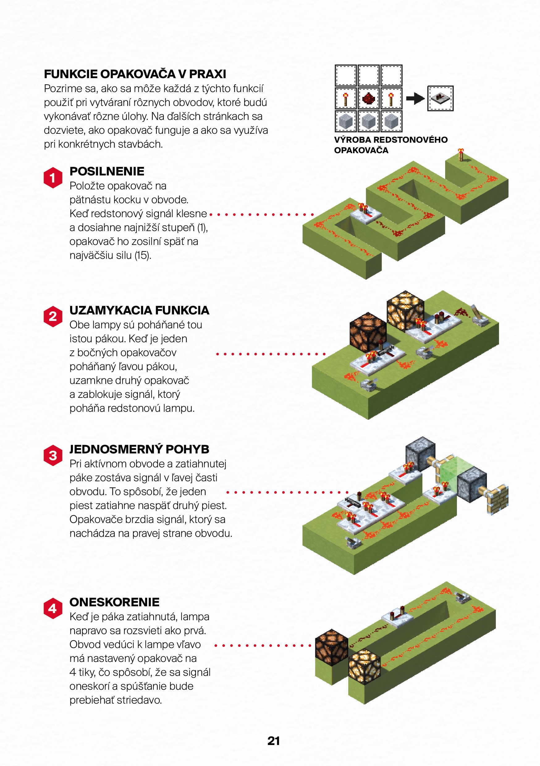 Vitajte v oficiálnom Sprievodcovi na využite redstonu. Zistíte, na čo všetko môžete využiť redstonové komponenty, naučíte sa vytvárať fungujúce obvody a tiež, ako efektívne využiť násypku a podávač.S týmito vedomosťami zostavíte zariadenia, ktoré zvládnu zložité výpočty, vystrelia hráčov do výšok alebo povzbudia vašu predstavivosť.Vďaka osvedčeným radám, informáciám a tipom od skúsených expertov z tímu Mojang je toto najlepší sprievodca pre začínajúcich inžinierov.