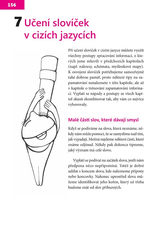 Jednotlivé kapitoly se věnují práci s texty (psaní souvislých textů, psaní výpisků z odborných textů, učení slovíček v cizích jazycích), porozumění čtenému, alternativním způsobům zpracování informací a zapamatování si učiva i využití moderních technologií.