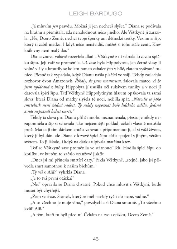 I když, abych hned sám sebe chytil za slovo, zase o takové představování nejde. Ostřílená, přesto stále mladá fantasy autorka, Leigh Bardugo (série Griša) se s čtenářem nemaže a posílá ho rovnou na Themyskiru. Tam zastihneme mladičkou...