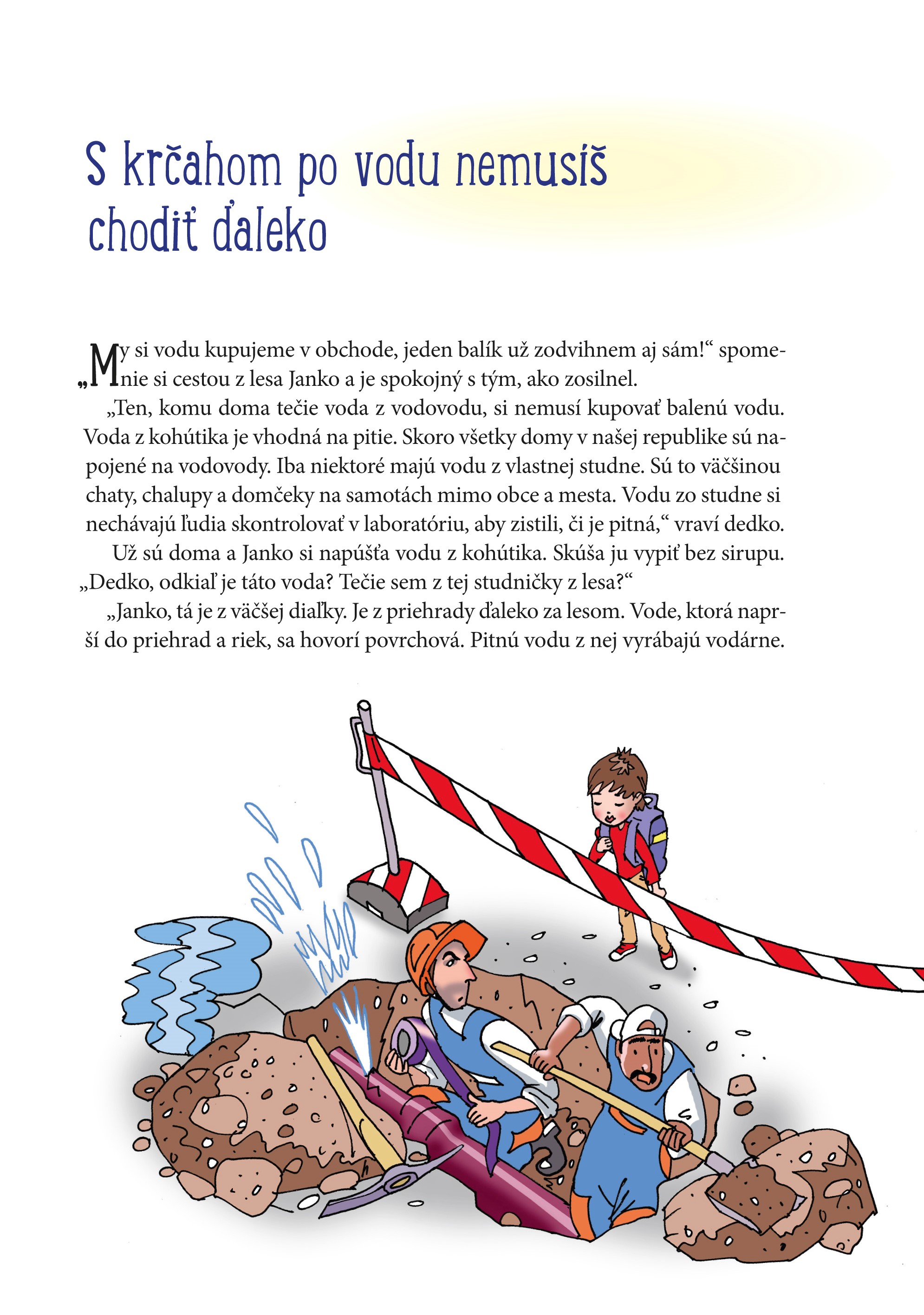 Autorka sa snaží prostredníctvom názorných a vtipných ilustrácií pozvoľna deti zoznámiť s tým, odkiaľ voda pochádza, ako sa čistí a ako sa potom dostane až k nám do domu. Ďalej musíme pripomenúť, že vodou musíme šetriť, a v rubrike Pre zvedavcov rozšírime tému o zaujímavé súvislosti. Kniha sa tak môže stať cenným pomocníkom pri vysvetľovaní niektorých javov, na ktoré sa malí prieskumníci pýtajú dospelých.