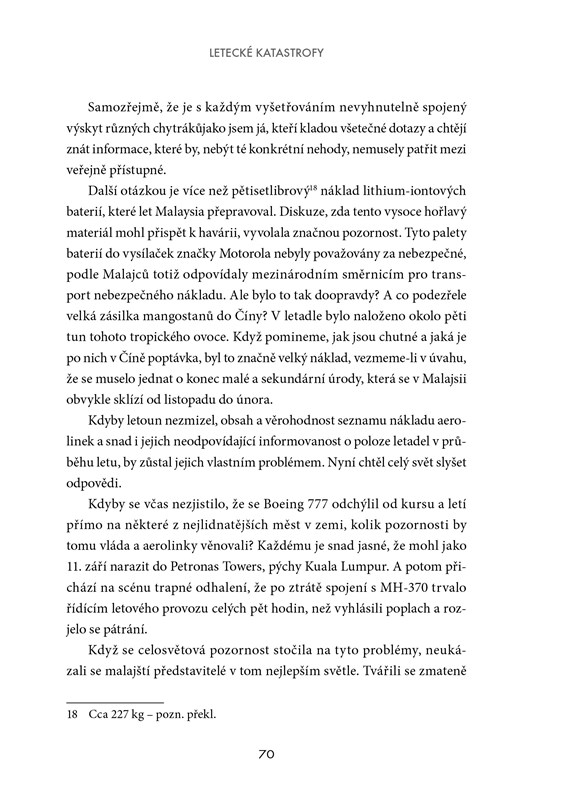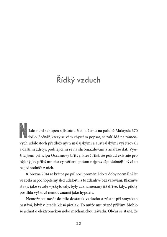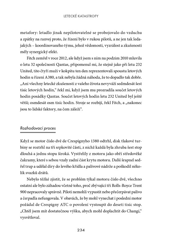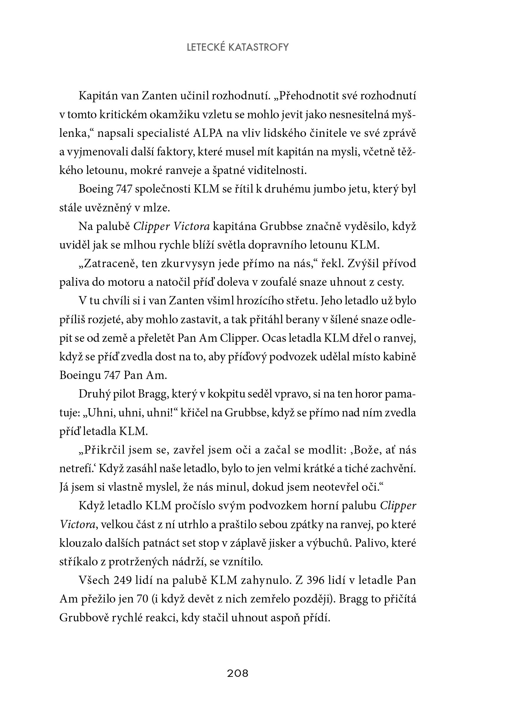 Fascinující zkoumání toho, jak lidé i technika mohou selhat a tato kritická selhání vedou k leteckým katastrofám. Tato kniha vás provede vyšetřováním těch největších i nejpodivnějších nehod, od dob Amélie Earhartové až po záhadné zmizení malajsijského boeingu letu MH 370. Pochopíte, jak je důležité zjistit nejen proč a jak se katastrofa odehrála, ale rovněž jaká opatření z ní vyvodit, aby v budoucnu ke stejnému problému nedošlo.