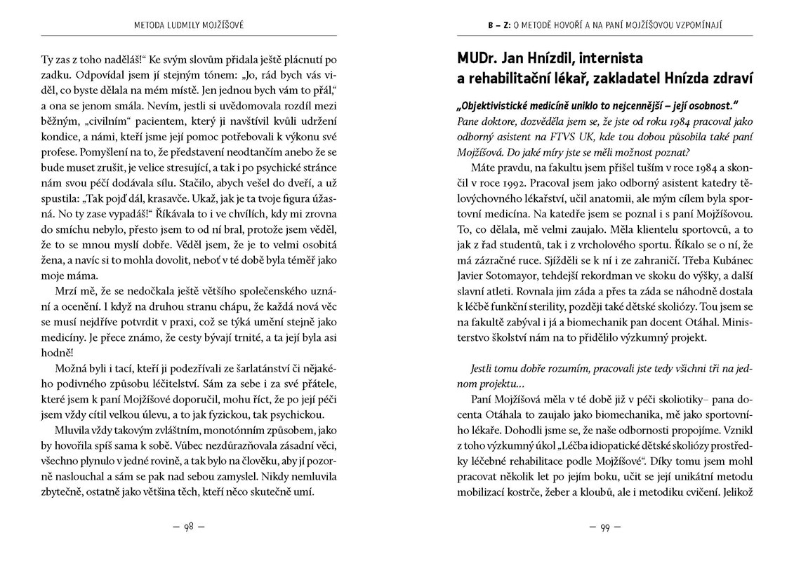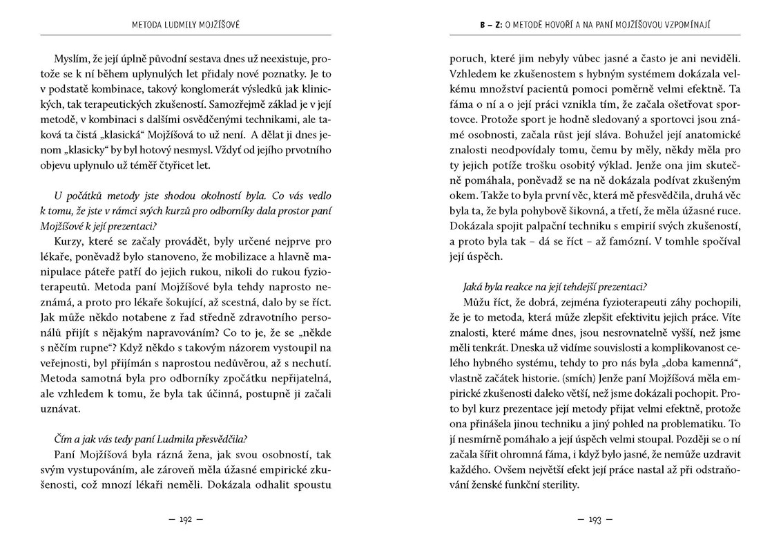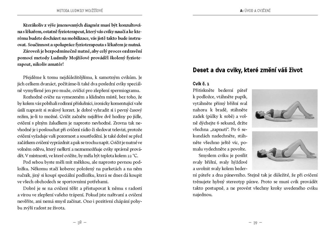 Legendární metoda několika jednoduchých cviků, které změní váš život! Metoda rehabilitační sestry Ludmily Mojžíšové se skládá z deseti cviků (plus dvou pro muže), které pomohly tisícům pacientů s chorobami pohybového ústrojí a lze jimi nejen odstranit chronické bolesti páteře či zmírnit menstruační problémy, ale také úspěšně léčit ženskou sterilitu a úspěšně otěhotnět. V knize najdete oficiální popis její metody, doplněný vysvětlivkami a fotografiemi jednotlivých cviků a v druhé části pak vyprávění známých osobností a lidí, jimž paní Mojžíšová pomohla a kteří na ni stále s láskou vzpomínají.