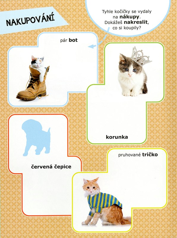 V sešitě plném veselých fotek koťat, koček a kocourů najdeš spoustu aktivit, se kterými si užiješ skvělou zábavu. Budeš vybarvovat, doplňovat, pátrat, hádat, ale hlavně nalepovat!