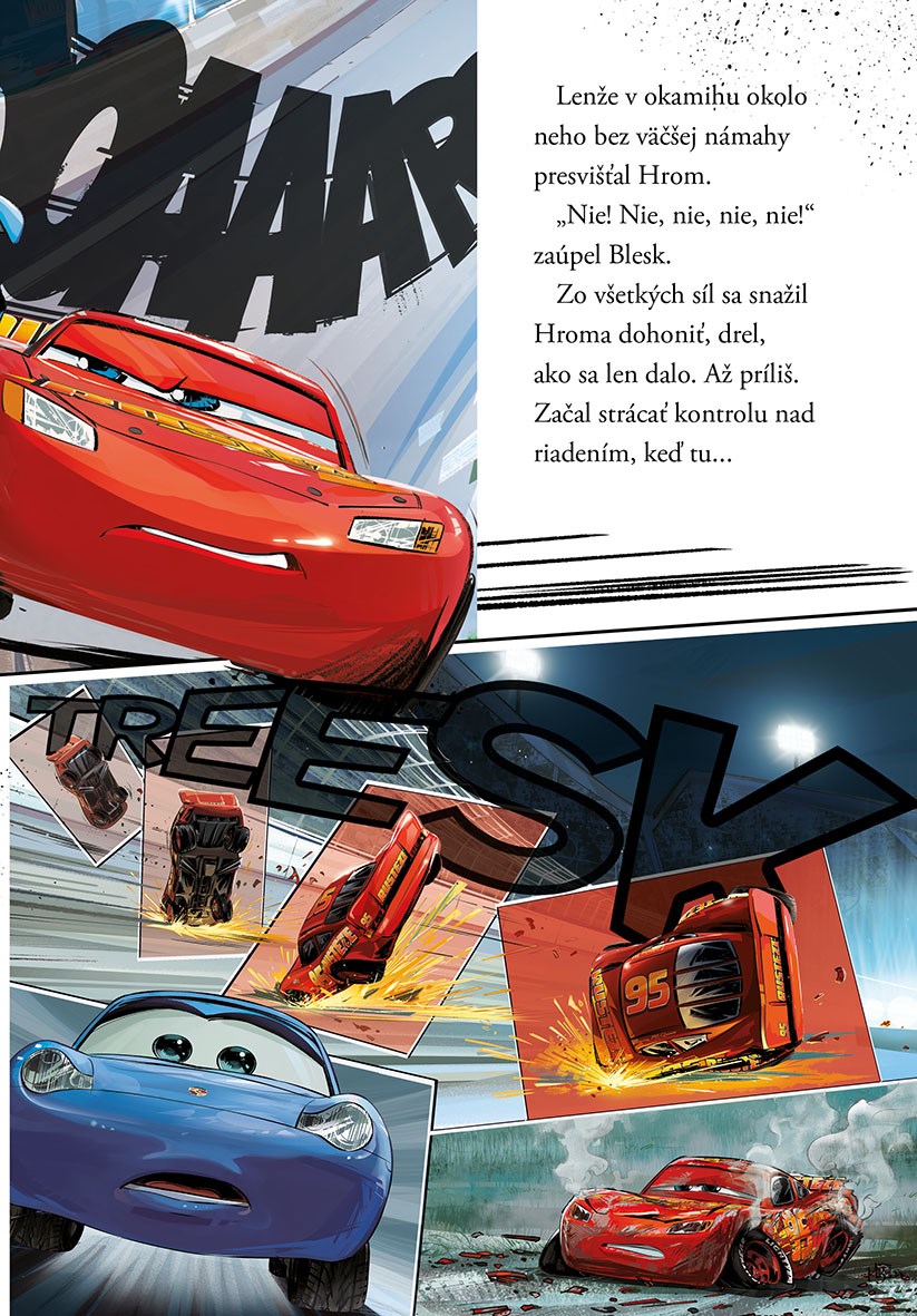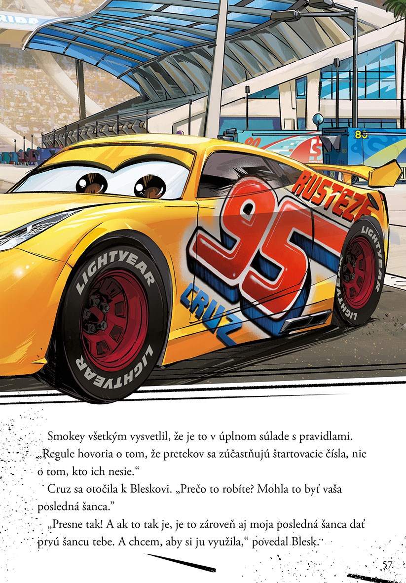 Legendárny Blesk McQueen, sedemnásobný víťaz pretekov o Piston Cup, si svojimi skúsenosťami, vášňou pre automobilový šport a férovým správaním získal uznanie na celom svete. V tejto knižke nájdete jeho najnovší príbeh z automobilových okruhov, na ktorých tentoraz musí súperiť s novou generáciou dravých pretekárov túžiacich po víťazstvách.