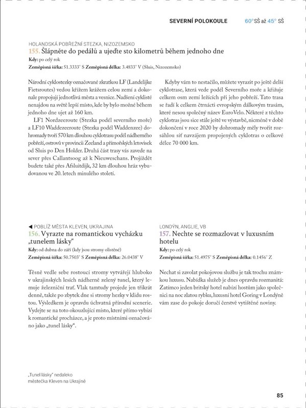 Tato kniha je sbírkou 1 000 míst, která musíte za svého života navštívit. A nejen to! Každé z míst v sobě skrývá malé i velké dobrodružství. V knize objevíte mnoho naprosto jedinečných aktivit, které se ve většině případů vážou ke konkrétním místům naší překrásné planety.