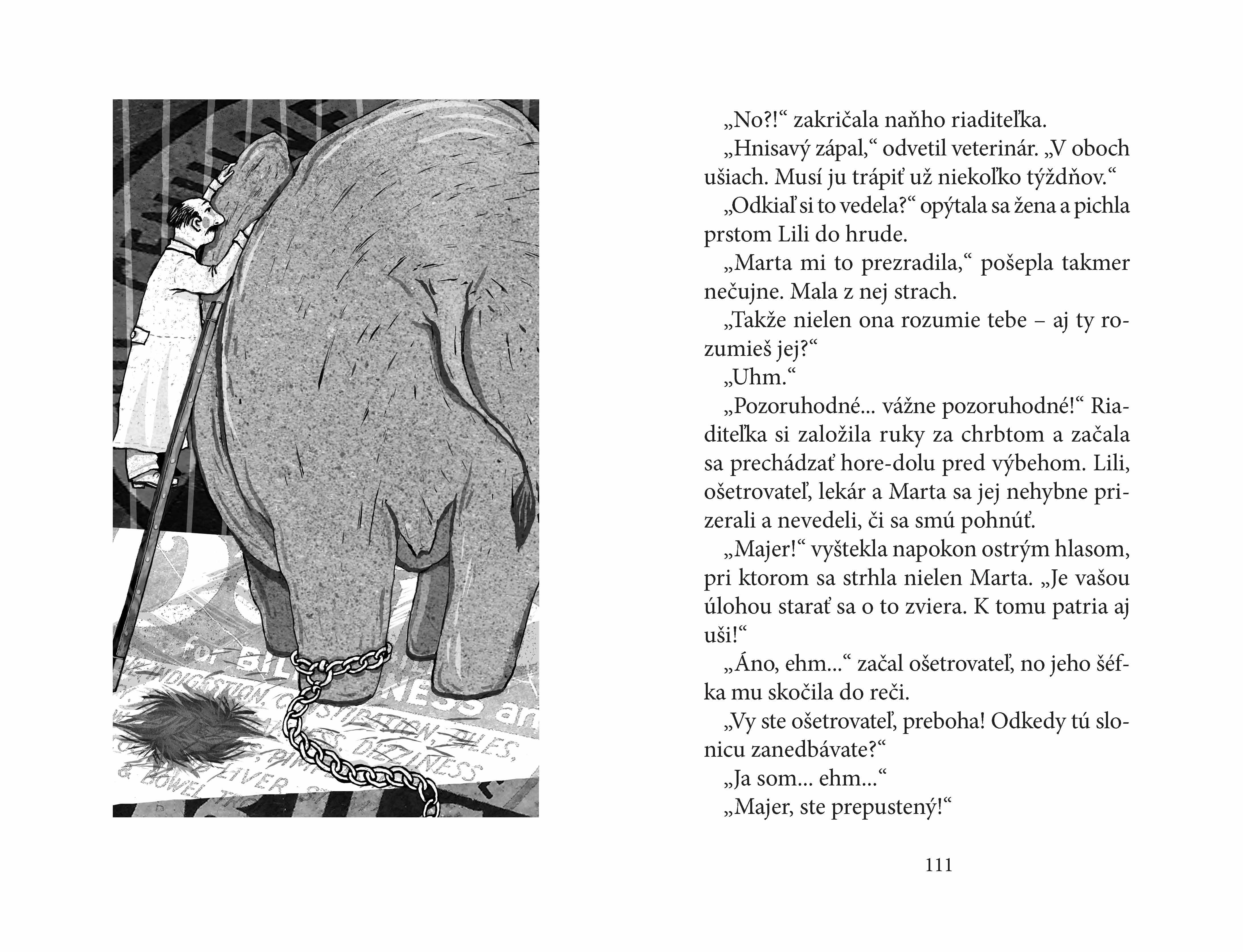 Hneď prvý deň v novej škole je pre Lili pohromou: najprv si znepriatelí partiu najprotivnejších dievčat na svete a potom ju posadia rovno vedľa klietky so škrečkom! Lili chcela svoje tajomstvo prísne strážiť. To, že sa dokáže rozprávať so zvieratami, jej totiž doposiaľ prinieslo len samé problémy! No slonica Marta naliehavo potrebuje Lilinu pomoc…
