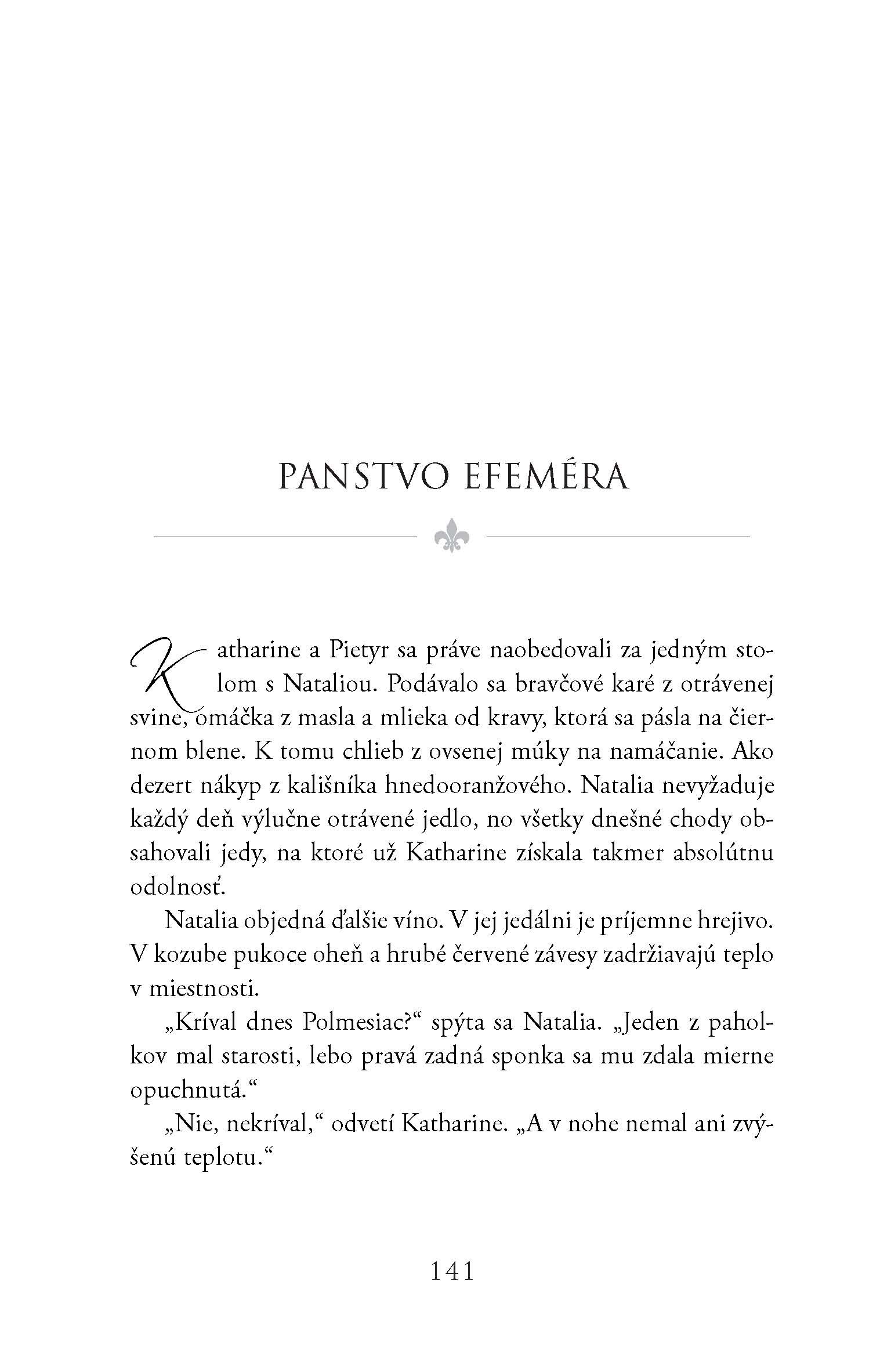 Dej začína ma panstve Efeméra, kde sa stretávame s Katherine, kráľovnou travičov. Jej postava bola zo začiatku dosť naivná, detinská a na úlohu kráľovnej sa podľa mňa nehodila.