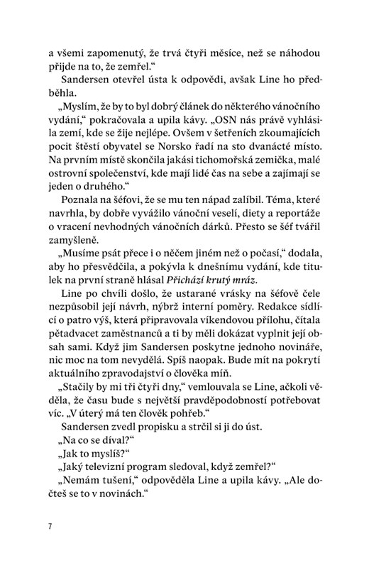 Několik týdnů před Vánoci je v blízkém Wistingově sousedství nalezen před televizorem mrtvý muž. Nic nenasvědčuje tomu, že by zemřel jinou než přirozenou smrtí. Pouze fakt, že byl objeven až po čtyřech měsících, dokládá, o jak osamělého člověka se jednalo. Nedlouho poté je ve školce, kde se pěstují vánoční stromky, nalezen jiný mrtvý muž. Ani jeho nikdo nepostrádá. Zatímco první nález vzbudí pozornost pouze Wistingovy dcery, novinářky Line, jež se rozhodne napsat článek o lidech, kteří vůbec nikoho nemají, vyvolá druhý nález rozsáhlé vyšetřování. Wisting a jeho kolegové mají před sebou složitý příběh, jenž jim velmi zamotá hlavu – a to nejen proto, že se do něj zakrátko nechtěně zaplete i Line.