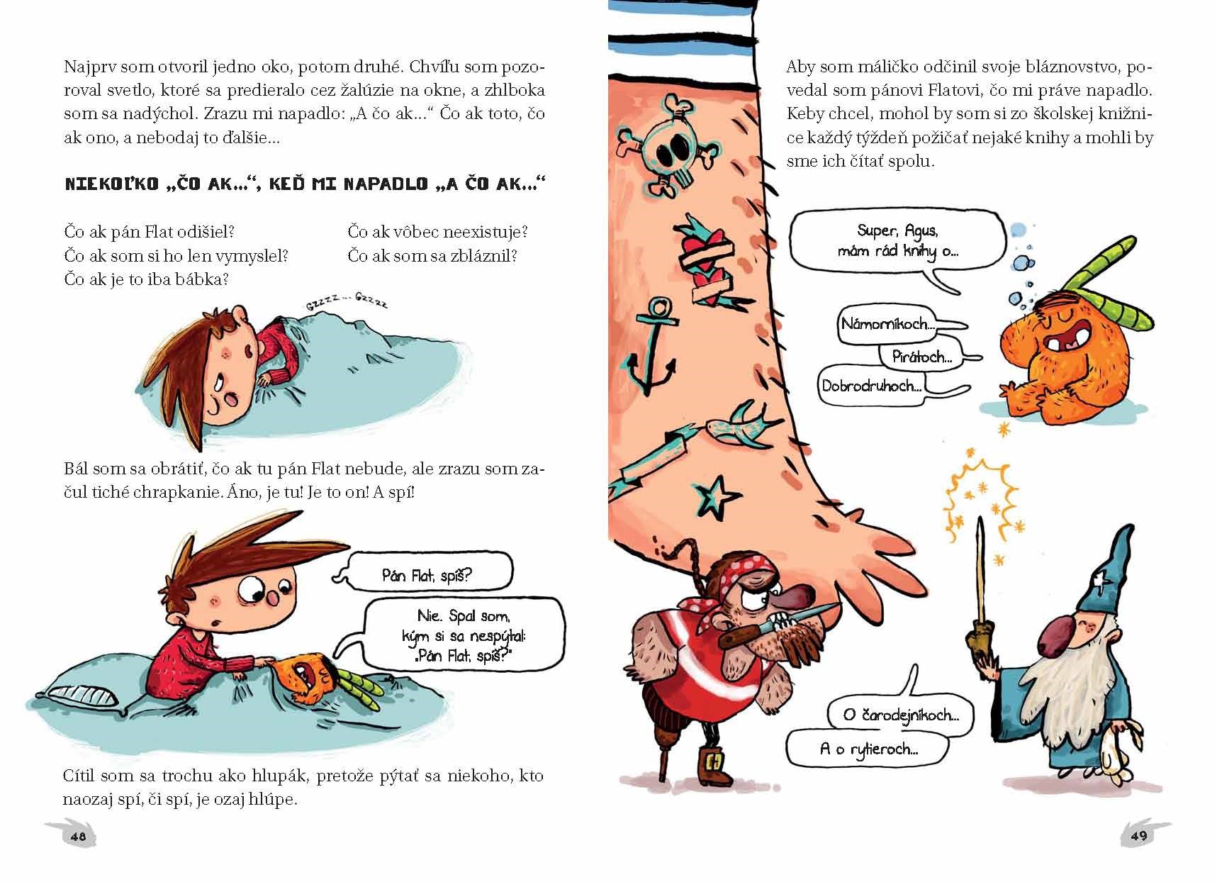 V prvej knihe série sa s hrdinami zoznámite. Samozrejme nechýba akcia. Agusova mama vyhodila všetky rozhádzané veci (aj s pánom Flatom) z jeho neupratanej izby, presne ako mu sľubovala. Na Agusovi teraz je, aby pána Flata získal späť. Tušíte správne, po chaotickej pátracej akcii sa mu to nakoniec podarí.