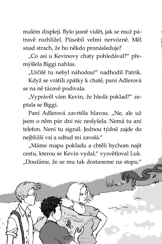 Biggi, Luk a Patrik se chtějí vydat v jeho stopách. Když vyloví z divoké řeky láhev a v ní najdou stejnou mapku k pokladu, jako měl Kevin, myslí si, že mají vyhráno. Bohužel ale netuší, že poklad hledají i nebezpeční zločinci!