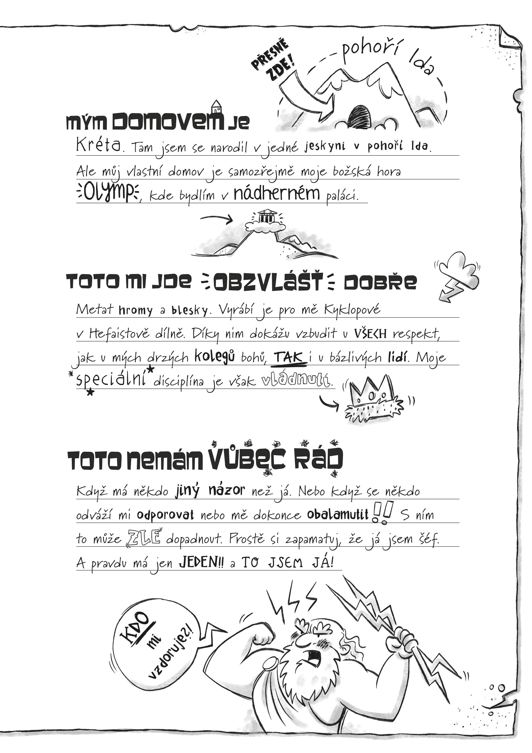 Už je to téměř 3000 let, co si lidé vyprávějí slavné báje o řeckých bozích a hrdinech. Ale jak to bylo doopravdy? Co je vlastně na těch příbězích skutečného? Konečně mají obyvatelé Olympu a bájní hrdinové příležitost osobně vypovědět, jak se podle jejich mínění všechny události seběhly. A pěkně po pořádku, od A jako Achilles až po Z jako Zeus! Takže čtenáři se konečně dozvědí z první ruky, proč velký hrdina Achilles pobíhá v dívčím oblečení, z jakého důvodu se krasavec Apollon co chvíli objímá se stromem a co mají společného krásná Afrodita, zlaté jablko a trojská válka. A samozřejmě také dojde na velkého bosse Dia a jeho zpověď, v čem všem má prsty…