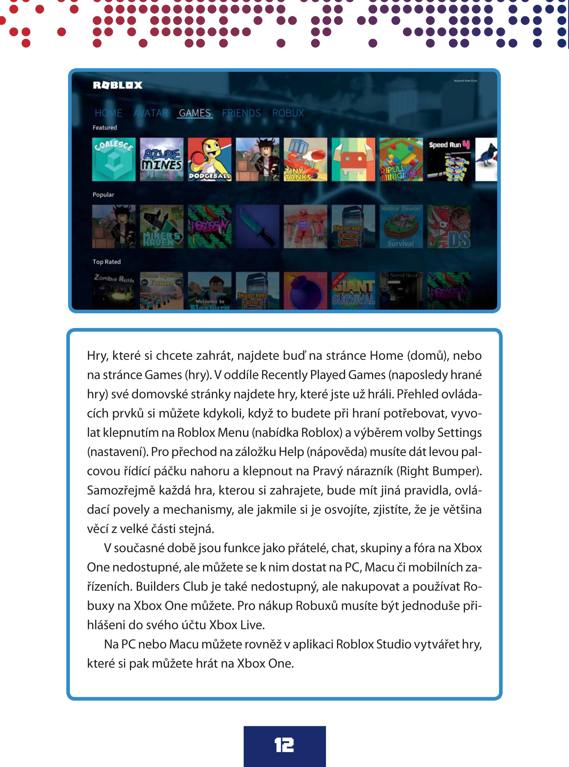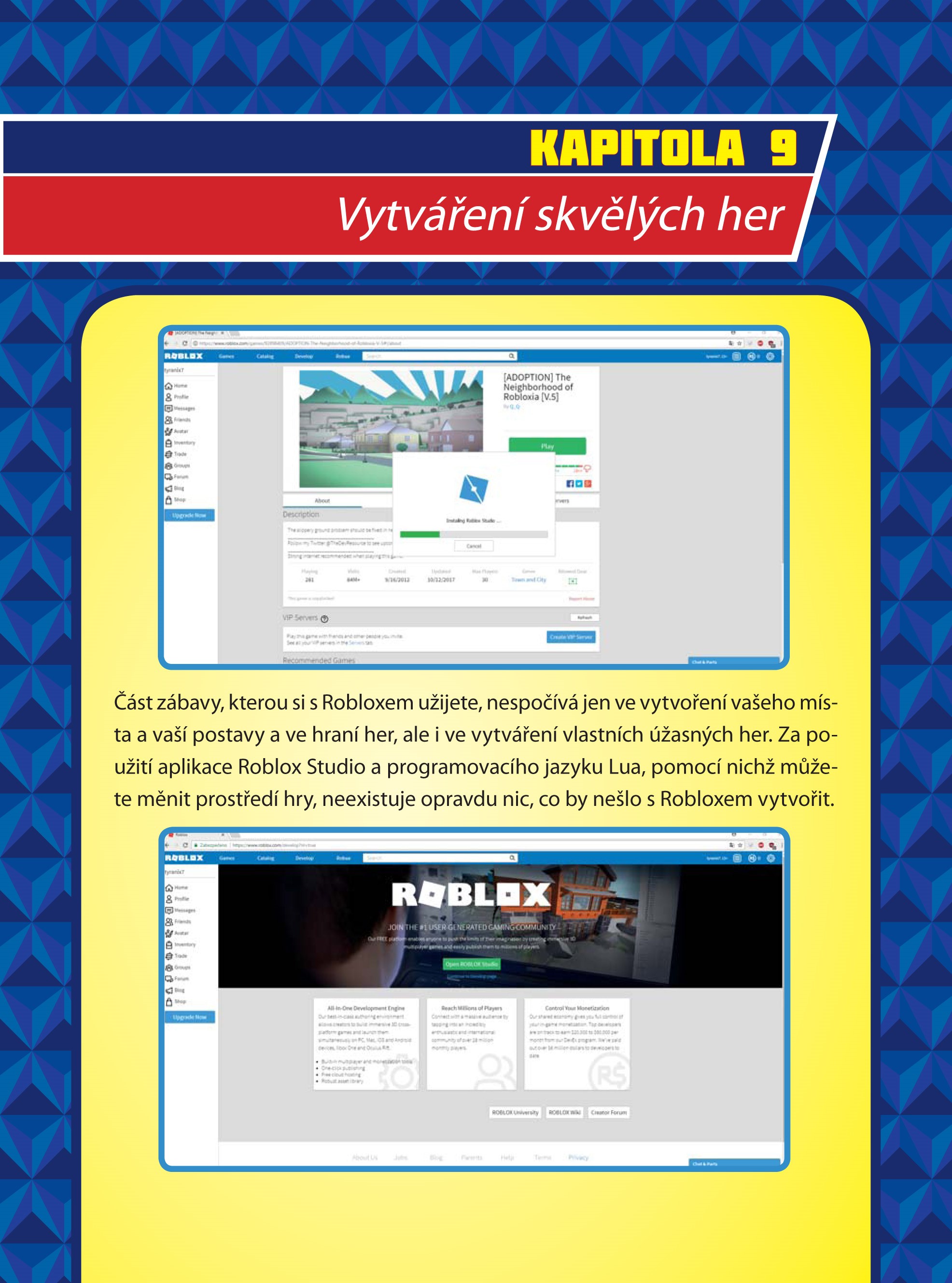 Chcete se naučit vytvářet vlastní 3D světy a hry a sdílet je s přáteli? Chcete si užít hraní Robloxu naplno? Pak je tato kniha právě pro vás! Provede vás oblíbenou sociální herní platformou od naprostých základů až po málo známé tipy a triky.