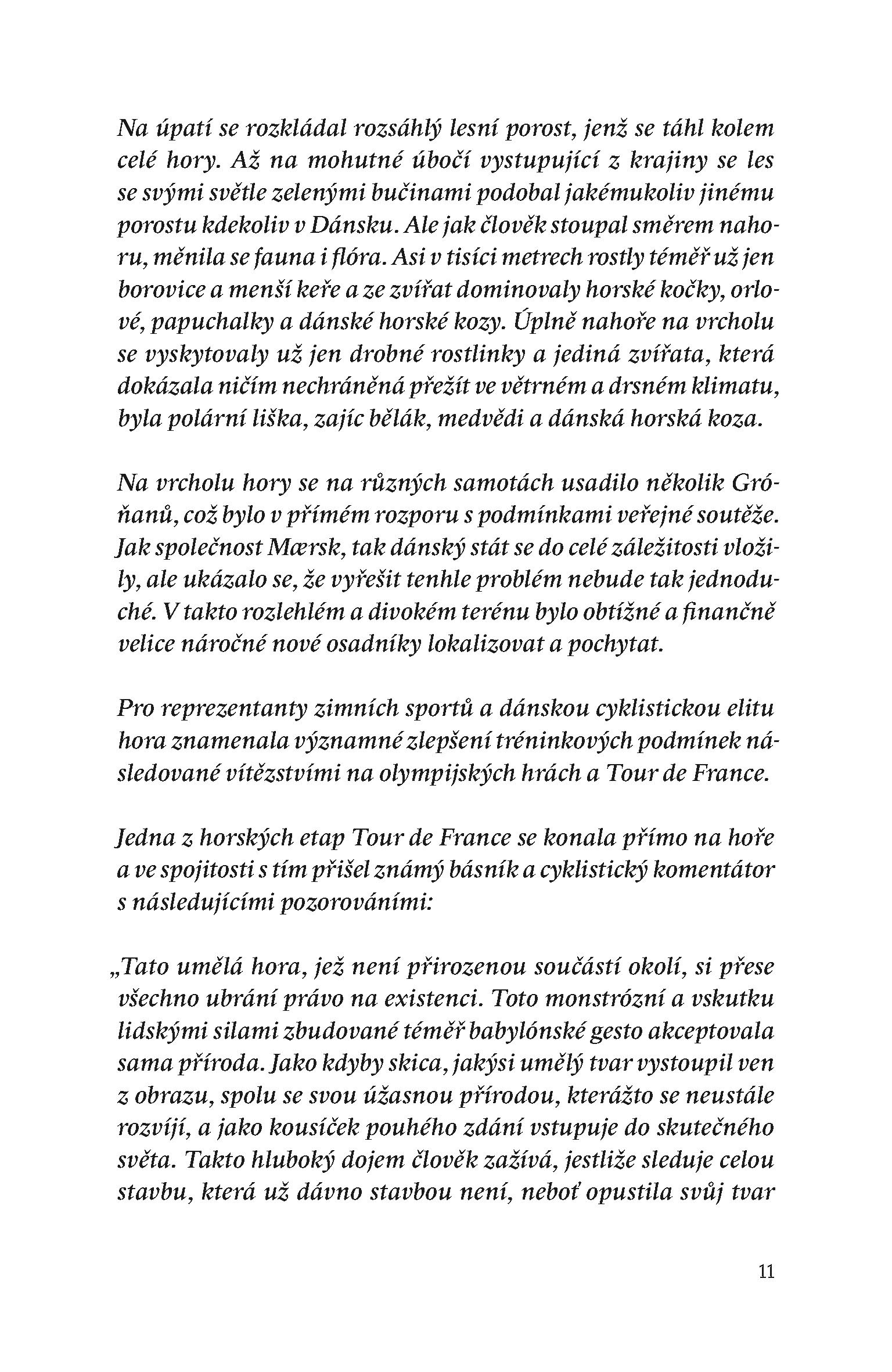 Dánská vláda se rozhodne nad hlavním městem – jedním z nejplacatějších míst světa – vztyčit tří a půltisícovou velehoru. Po obvodu dosahuje přes pětapadesát kilometrů a její povrch odpovídá zhruba 118 000 fotbalových hřišť. Hora nese název Mount Kodaň. Dánsko díky ní získá několik dalších klimatických zón, od tropické až po polární, jež utvoří živnou půdu pro bezpočet nových exotických druhů, které až neuvěřitelně obohatí původní dánskou faunu a flóru.