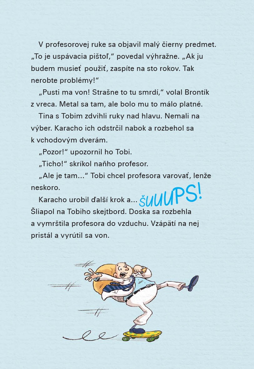 Dvojčatá Tina a Tobi majú veľké tajomstvo. Ukrývajú v strýkovom dome dvoch dinosaurov – malého Brontíka a vtákojaštera Lietavca. Bohužiaľ, o ich existencii vedia profesor Karacho a reportér Dubák. Tí majú v pláne oboch dinosaurov chytiť, skúmať a presláviť sa tým.