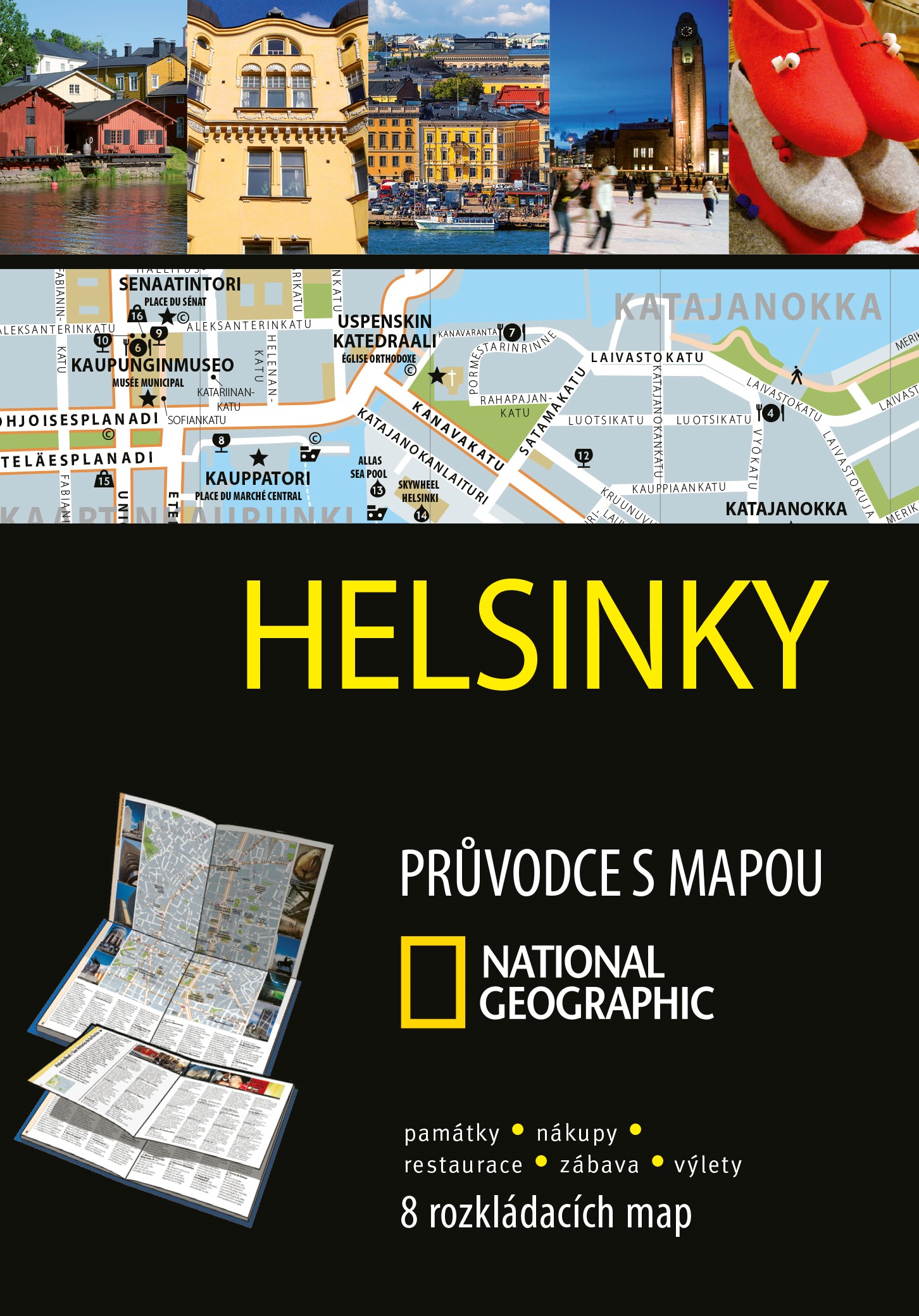 * Unikátní koncept: velká podrobná mapa, rozdělená na rozkládací mapky městských čtvrtí, v nichž vše snadno najdete