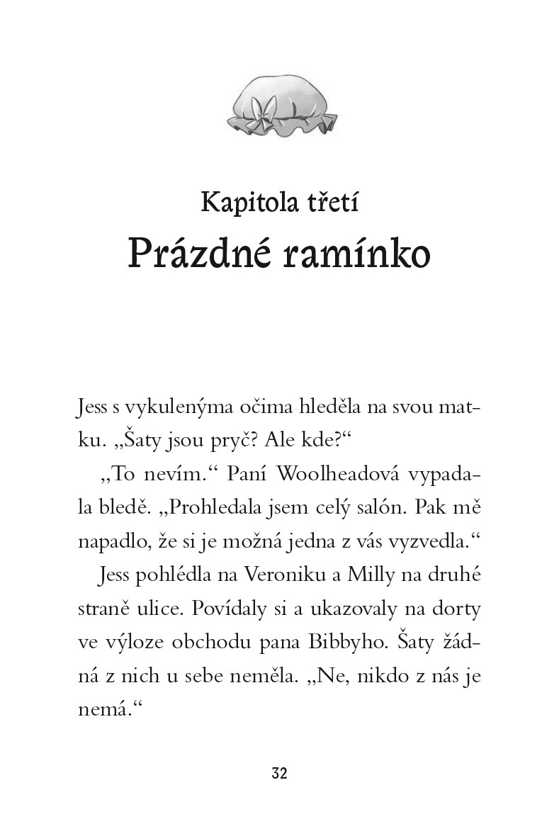 Dvě kamarádky, jedny ztracené šaty a pachatel na útěku. Druhý díl napínavé série pro malé čtenářky, které mají rády napětí, dobrodružství, ale i krásné oblečení.