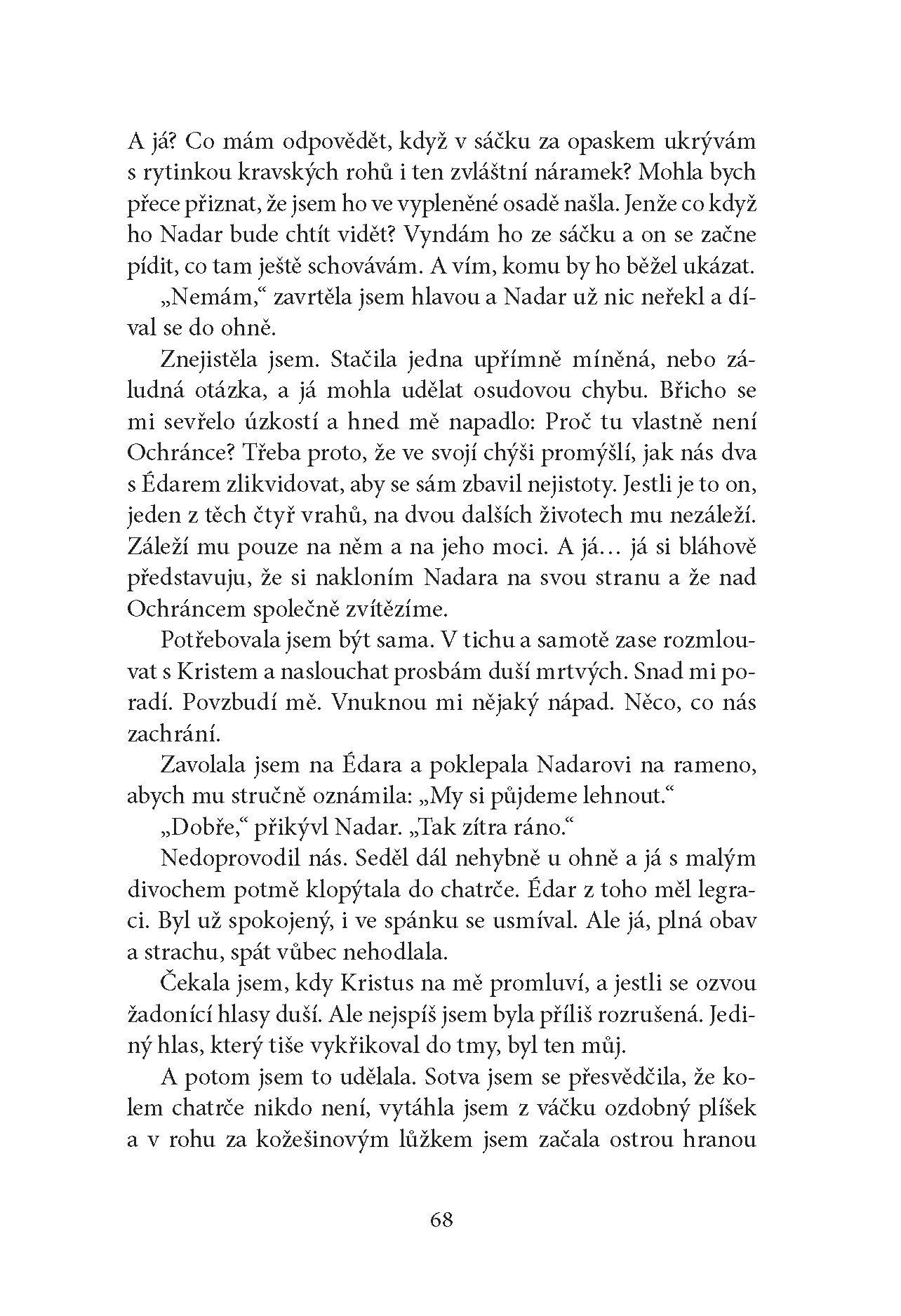 Jana, nebo Mana? Kdo jsem? Ta, která žije tady a teď, nebo ta, která putuje dávnou pohanskou krajinou s malým Édarem? Jeho osadu neznámí jezdci vypálili, a já mu chci najít nový domov. Jednoho dne dojdeme k lidem, kteří nás přátelsky přijmou. Nikdy by mě nenapadlo, že právě zde nám hrozí smrtelné nebezpečí. Zachráním podruhé Édara? A sebe?