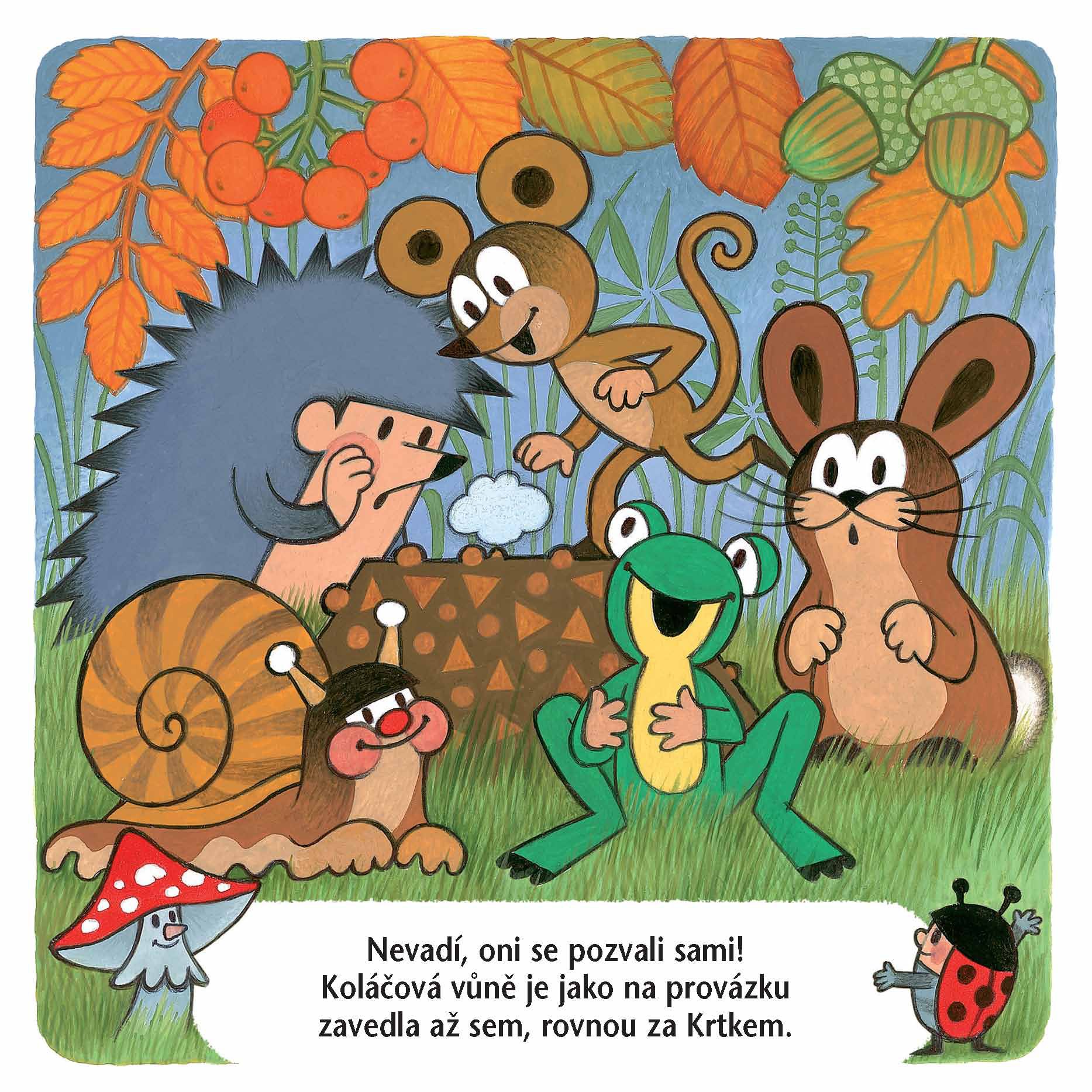 Zafoukalo, zafičelo a byl tu podzim. Na podzim ze stromů nepadá jen listí – když máte domeček pod švestkou, padají vám na domeček i švestky. Když vlétla Krtkovi do krtiny nejdřív jedna, pak druhá a ještě další, začal Krtek přemýšlet, co si s takovou nadílkou počne. Co je nejlepší ze švestek? Přece švestková povidla! A co z povidel? Povidlové koláče! Jak rozhodli, tak udělali. Krtek se sýkorkou navařili povidla, napekli koláče, ale to dá rozum, že je nesnědli sami.