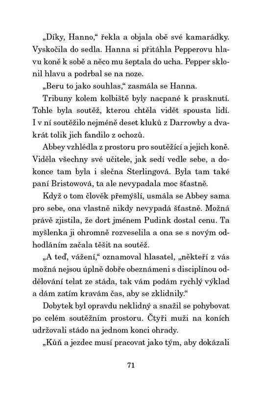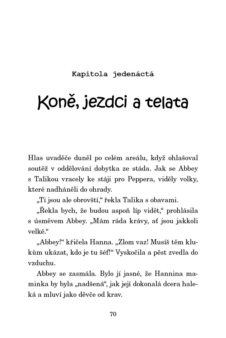 Hanna, Abbey a Talika pilně studují na škole pro budoucí zvěrolékařky. V následujících týdnech se budou věnovat především péči o býky, krávy a telátka. Abby to bere opravdu vážně. Dokonce se přihlásí do soutěže v odchytávání telat, i když tuší, že boj nebude snadný. Hlavním soupeřem totiž budou chlapci z nedaleké školy. Do jejího tréninku ale zasáhne onemocnění Taličina poník. Je to s ním vážné a holky čeká nelehký úkol. Budou muset zjistit, co přesně poníka trápí a najít lék, který ho zachrání…