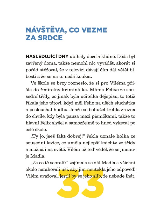 Každý z nás si občas trochu vymýšlí. Vilémův děda to ale dělá pořád, a navíc všemu, co říká, sám věří. Zrovna nedávno se musela celá rodina kvůli jednomu z jeho šílených nápadů odstěhovat, aby sousedi dědovi nezvalchovali hřbet, nenatrhli úsměv nebo alespoň nepocuchali ofinu. Řekli byste možná, že teď dá děda chvíli pokoj, ale kdepak. Už zase řádí a tahá chudáka Viléma do dalšího průšvihu. Snad má pravdu máma, když říká, že je děda porouchanej. Nebo ho možná normální svět nebaví, a proto utíká do toho svého, vybájeného. Ať už to je, jak chce, Vilém s tím musí něco udělat, nebo se z těch dědových kousků zblázní. Přibere tedy ještě do party dědečkova psychiatra doktora Pavlíka, o němž si máma myslí, že není o moc míň porouchanej než děda, a bláznivé pátrání po ztraceném rozumu může začít…