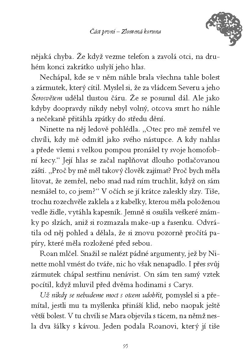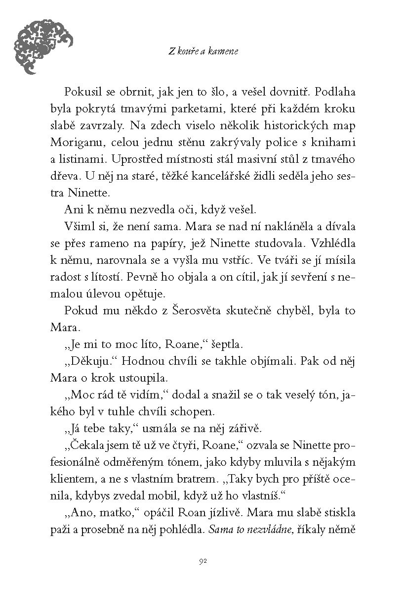 Morigan – nádherné, ale kruté město. Obyčejní smrtelníci zde žijí po boku nadpřirozených bytostí Šerosvěta a pod přísným dohledem čtyř vládců města. Když se jeden z nich objeví na prahu domu Carys Obelové a zemře jí v náručí, dívka netuší, že tenhle okamžik jí zásadně změní život. Může se totiž stát jeho nástupkyní – nositelkou titulu paní kouře a kamene. Aby titul získala, musí však podstoupit těžkou zkoušku od ostatních pánů města.