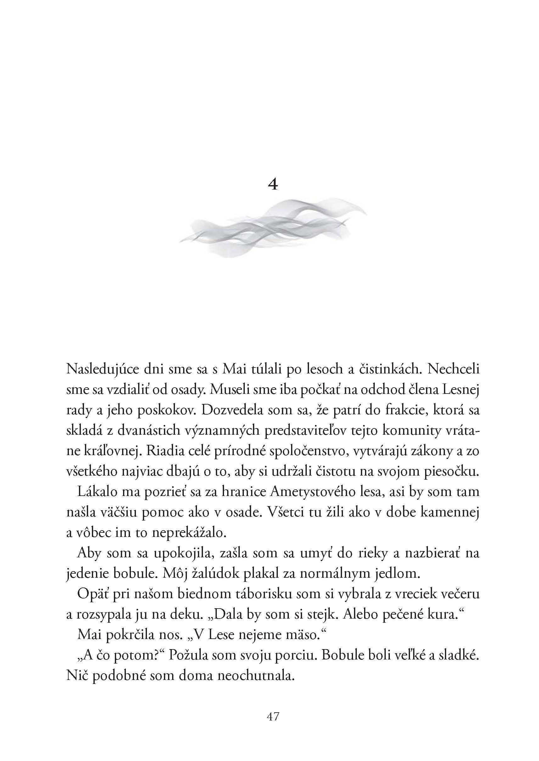 Na začiatku sa zoznamujeme s hlavnou hrdinkou a aj s Ametystovým lesom. Porozumieť všetkému, zistiť čo a ako funguje, bolo do istej miery pre mňa pomerne náročné. Začítať sa do knihy bol pre mňa nadľudský výkon, ale podarilo sa. Keď sa prekúšete cez celkom zložitý začiatok, tak si vás kniha podmaní a budete čítať a čítať, až zabudnete skoro vystúpiť z vlaku… netajím sa tým, že sa to stalo mne. Ešte, že vlak stál v konečnej stanici (smiech).