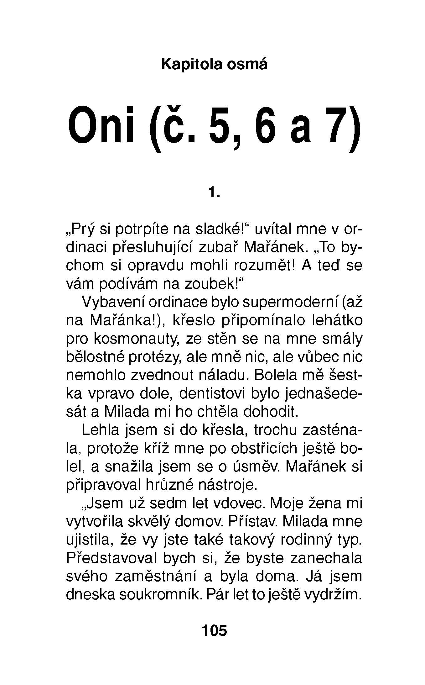 Úspěšná prvotina známé autorky a scenáristky o čtyřicetileté ženě, s níž se rozvedl manžel a ona je nucena řešit novou životní situaci. Kniha srší nápady a návody, jak překonat rozvod, komplexy, citové a rodinné trable a jak relativizovat pojem zoufalosti. Je to kniha plná humoru, laskavosti a životního optimismu.