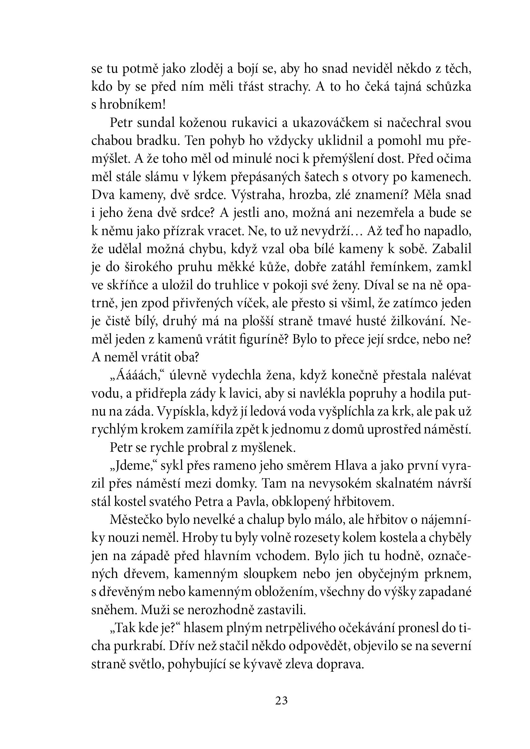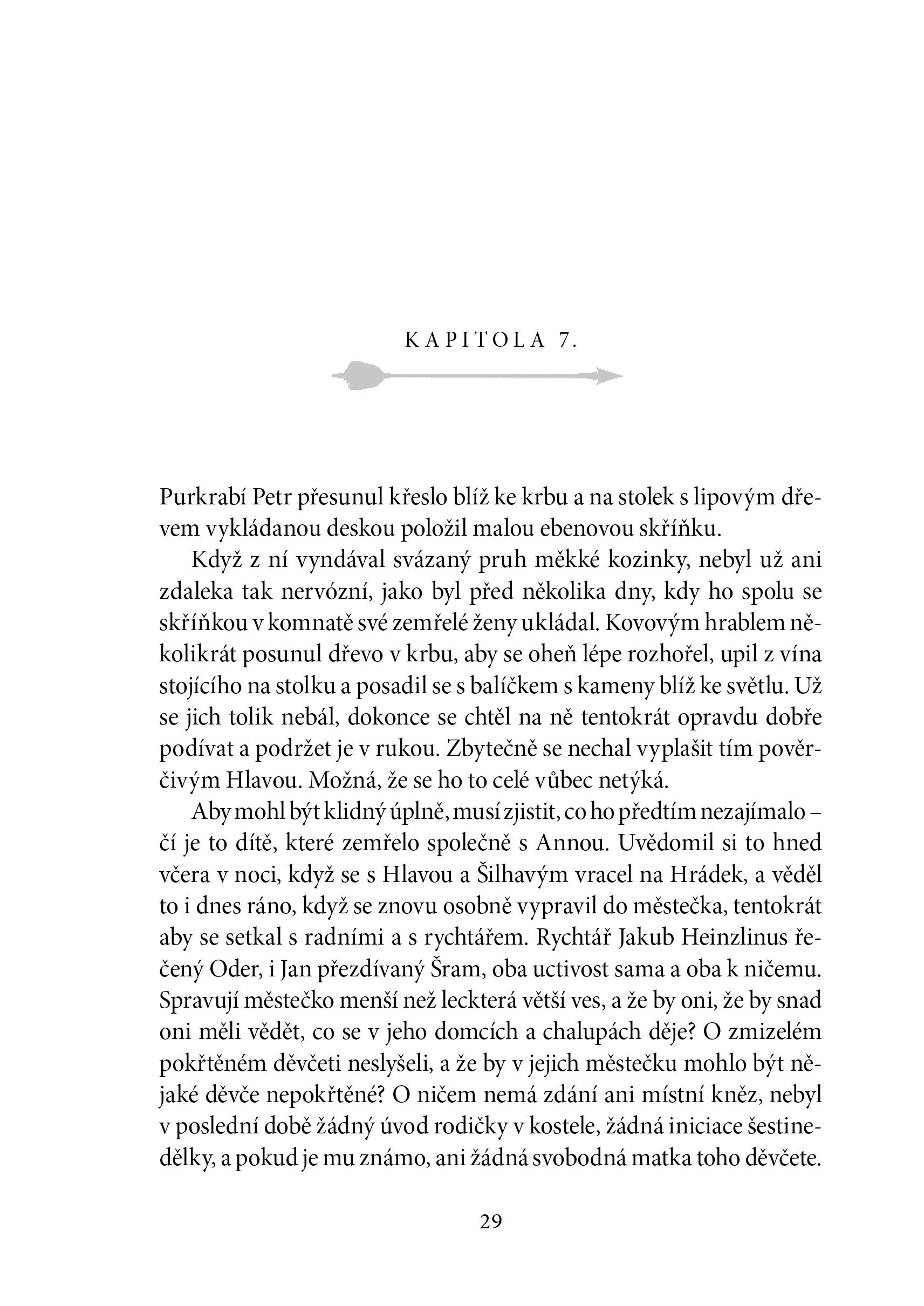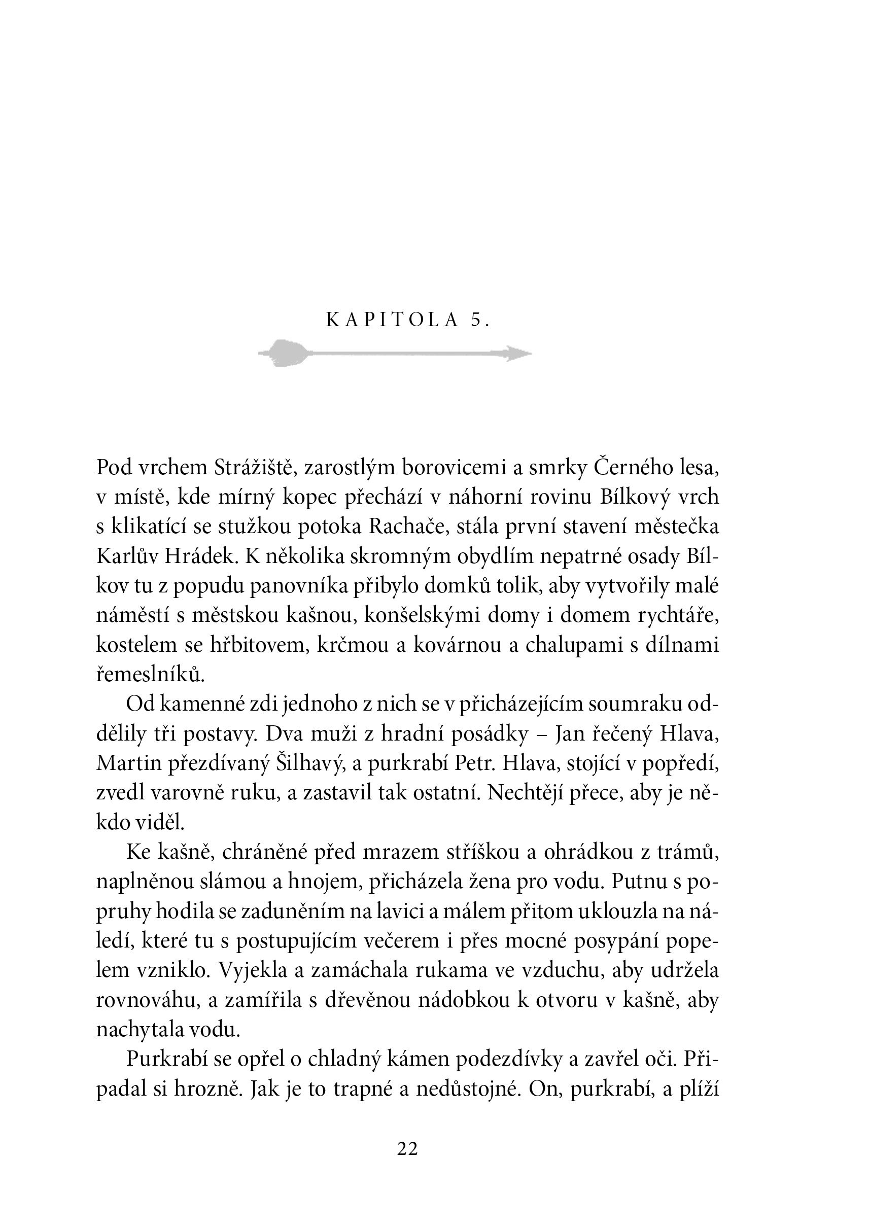 Purkrabí tajemného Karlova hrádku marně vyhlíží císaře Karla IV. Čas neúprosně běží a hrad zasáhne série podivných úmrtí. Obětí stále přibývá a tragédie se nevyhne ani rodině purkrabího. Má vše na svědomí záhadný muž v černém, kterého se obyvatelé hradu i podhradí bojí a o němž nikdo netuší, odkud se vzal? A proč chce vidět všechny mrtvé a umírající výměnou za uzdravení nemocných? Je snad on samotná smrt? Historický román, kde se prolíná skutečnost s fikcí.