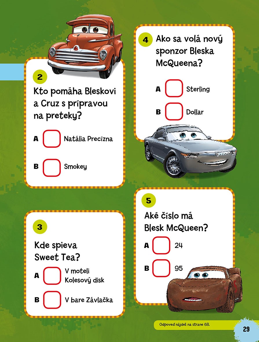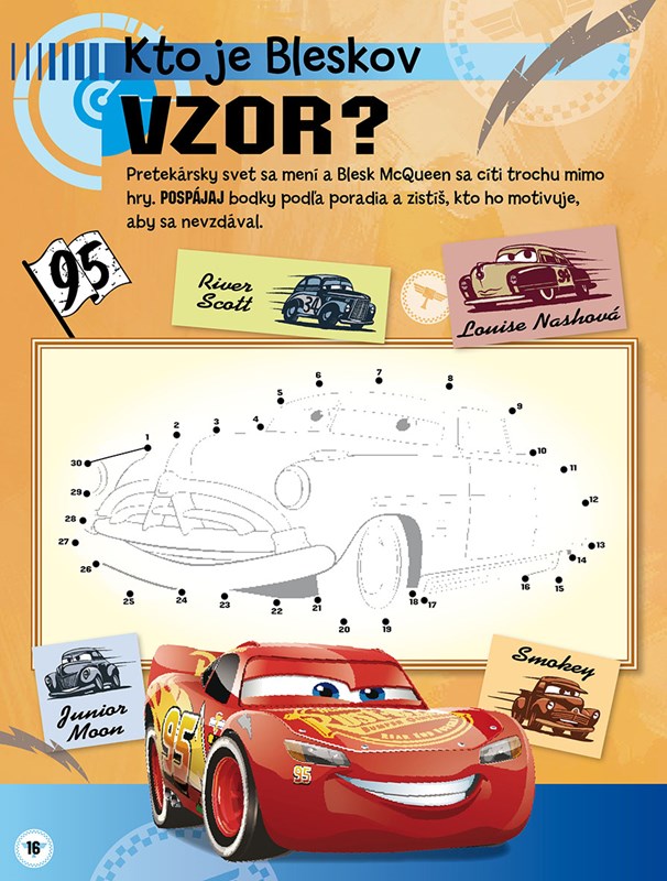 Už sa za vami rútia všetky autá z Chladičových kúpeľov na čele s Bleskom McQueenom a jeho novými súpermi z pretekárskych okruhov – autami novej generácie. Prinášajú vám nielen nový filmový príbeh Autá 3, ale aj všetkých starých priateľov. V knižke vás čaká mnoho zábavných hier, hádaniek a úloh. Môžete si tiež zložiť puzzle či zahrať pexeso. Tak na to poriadne šliapnite a skvelo sa zabavte!