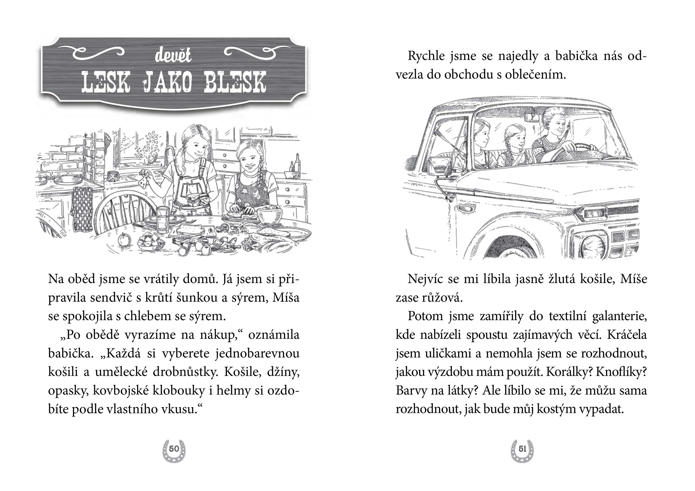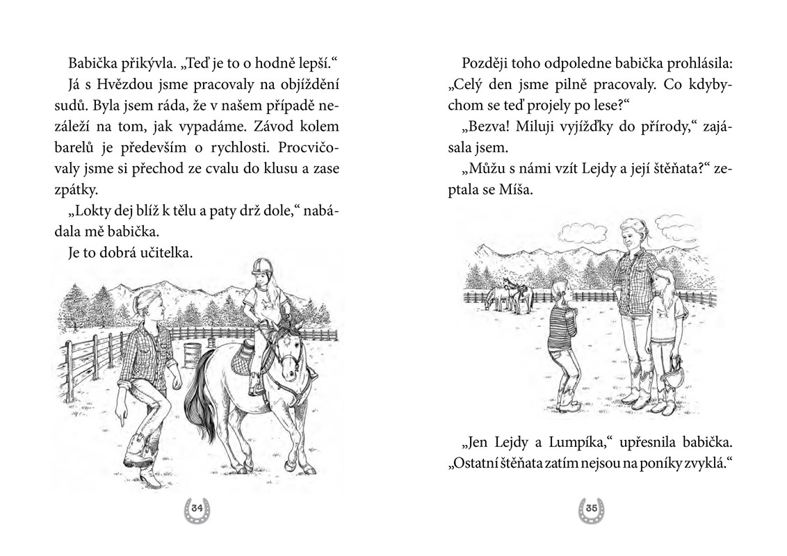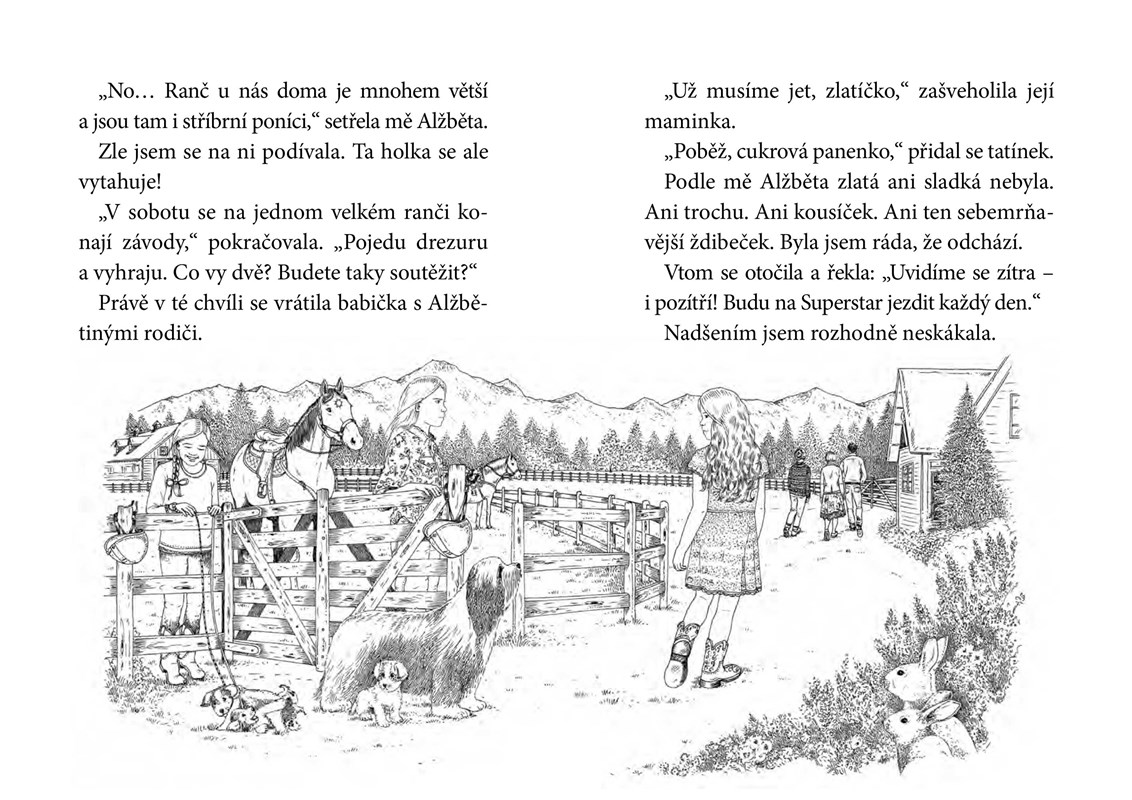 Terezka a Míša rády jezdí na ponících. A teď se připravují na svůj první jezdecký závod v životě. Těší se, ale také se tak trochu bojí. Potom se na ranči babičky Stříbrné objeví dívka jménem Alžběta, která si přivede vlastního poníka. Tvrdí, že ona na závodech zvítězí, zatímco sestry utřou nos! Podaří se Terce a Míše uspět a neskončí jejich účast na jezdeckém dni ostudou?