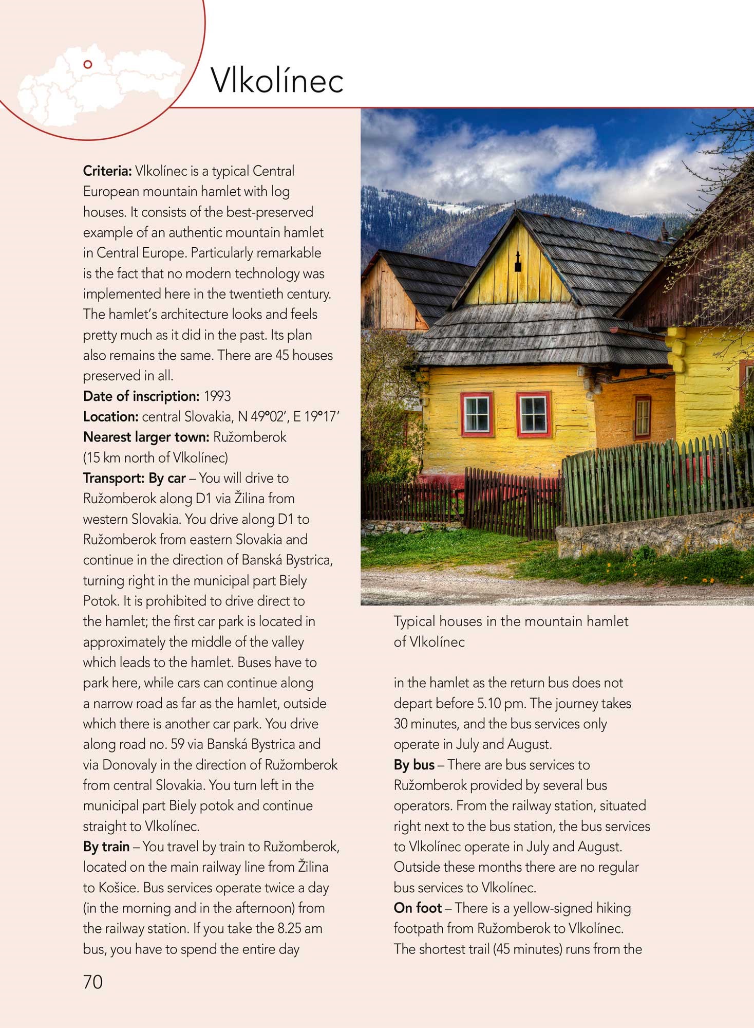 Visit places of interest forever carved into the history of Slovakia. Be inspired by outstanding landmarks of natural beauty. Learn about the intangible heritage of Slovakia included on the UNESCO List. Finally, read in this book about tips for visiting equally picturesque and attractive landmarks and heritage sites, nominated for inscription on the UNESCO List.
