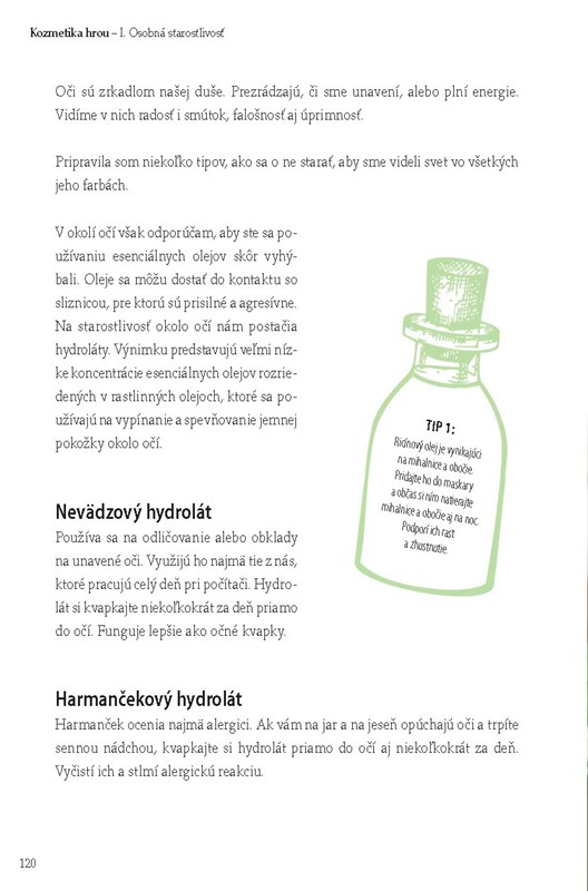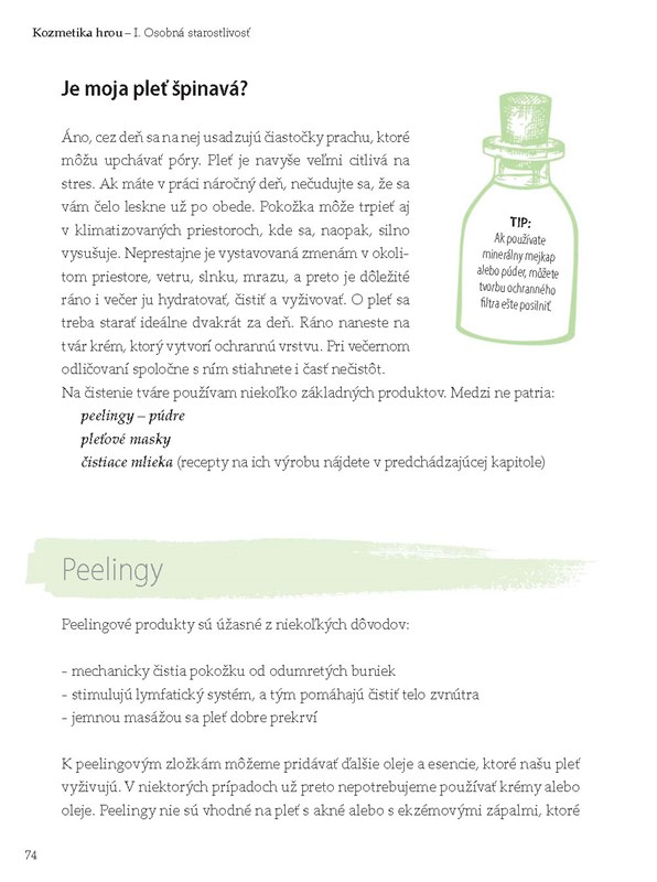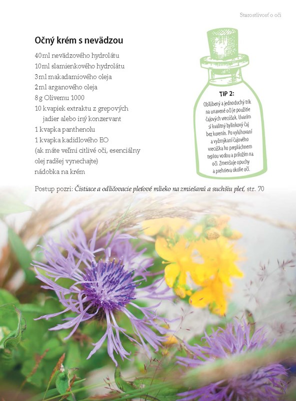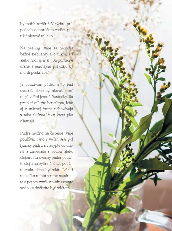 Táto kniha je plná úžasných voňavých receptov, inšpiráciu na víkendovú večeru však nečakajte. Prináša totiž návody na výrobu čisto prírodnej kozmetiky, ktorá je v súlade s prírodou, netoxická a ekologicky šetrná. Priestor je venovaný aj detskej kozmetike a domácej drogérii – prípravkom na pranie, čistenie či dezinfekciu.