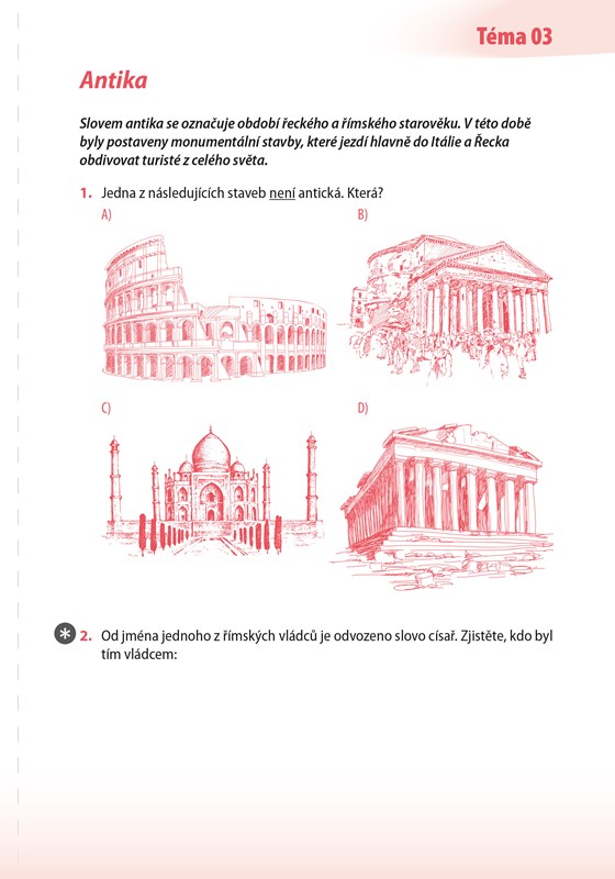 K tomu směřuje tahle knížka. Část úloh určitě nebudete schopni vyřešit z hlavy. Abyste takové úlohy vyřešili, budete si muset potřebné informace sehnat jinde. Můžete hledat na internetu i v knihách a učebnicích, časopisech – všude tam, kde si myslíte, že byste mohli objevit informaci, která vám k úspěšnému zdolání úlohy chybí. Smyslem dějepisu není zapamatování si dat, jmen a událostí nazpaměť. Důležitější je umět si informace najít a dále s nimi pracovat. Tak vzhůru do toho! Každý list můžete řešit samostatně, a klidně si ho i vytrhněte.