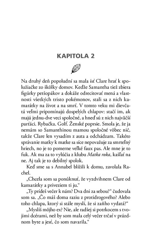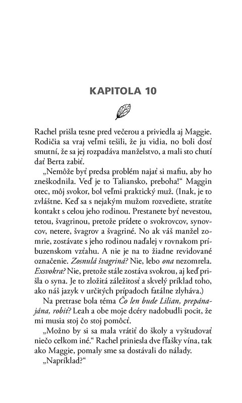 Je to jeden z príbehov, kde už na začiatku knihy zhruba tušíte ako skončí. S čistým svedomím však môžem napísať, že mi to tentokrát neprekážalo. Lebo dej nebol iba o Lilian, ale aj o jej sestre či švagrinej. Veľkú úlohu zohrávali aj deti Annabel a Clare. A v neposlednom rade všetci účastníci kurzu. Kde sa nazbierala vskutku zaujímavá partička ľudí, ktorí na prvý pohľad nemajú nič spoločné.