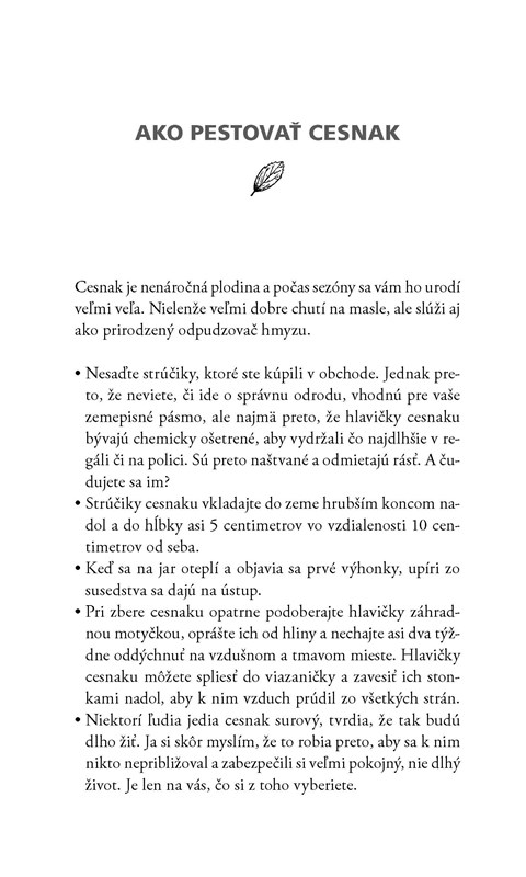 Veľmi milo knihu dopĺňajú rady, ako pestovať zeleninu. Pred každou kapitolou nájdete tipy na to, ako sadiť napríklad mrkvu, kapustu, cesnak či kukuricu. Alebo aj to, ktorá rastlina s ktorou dobre vychádza a môžu vyrastať pri sebe. Veľa záhradkárskych tipov sa však dozviete aj priamo v príbehu.