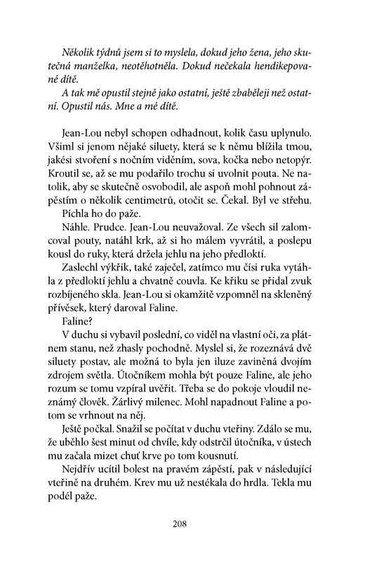 „Já že jsem to zvládla? To všechno je jenom zdání. Vítr. Ne, ne, my netvoříme hezkou rodinu. Chybí nám to podstatné. Je to prokletí. Jsem špatná matka. Mé tři děti jsou odsouzené. A mou jedinou nadějí zůstává, že jedno z nich, aspoň jedno z nich unikne prokletí.“