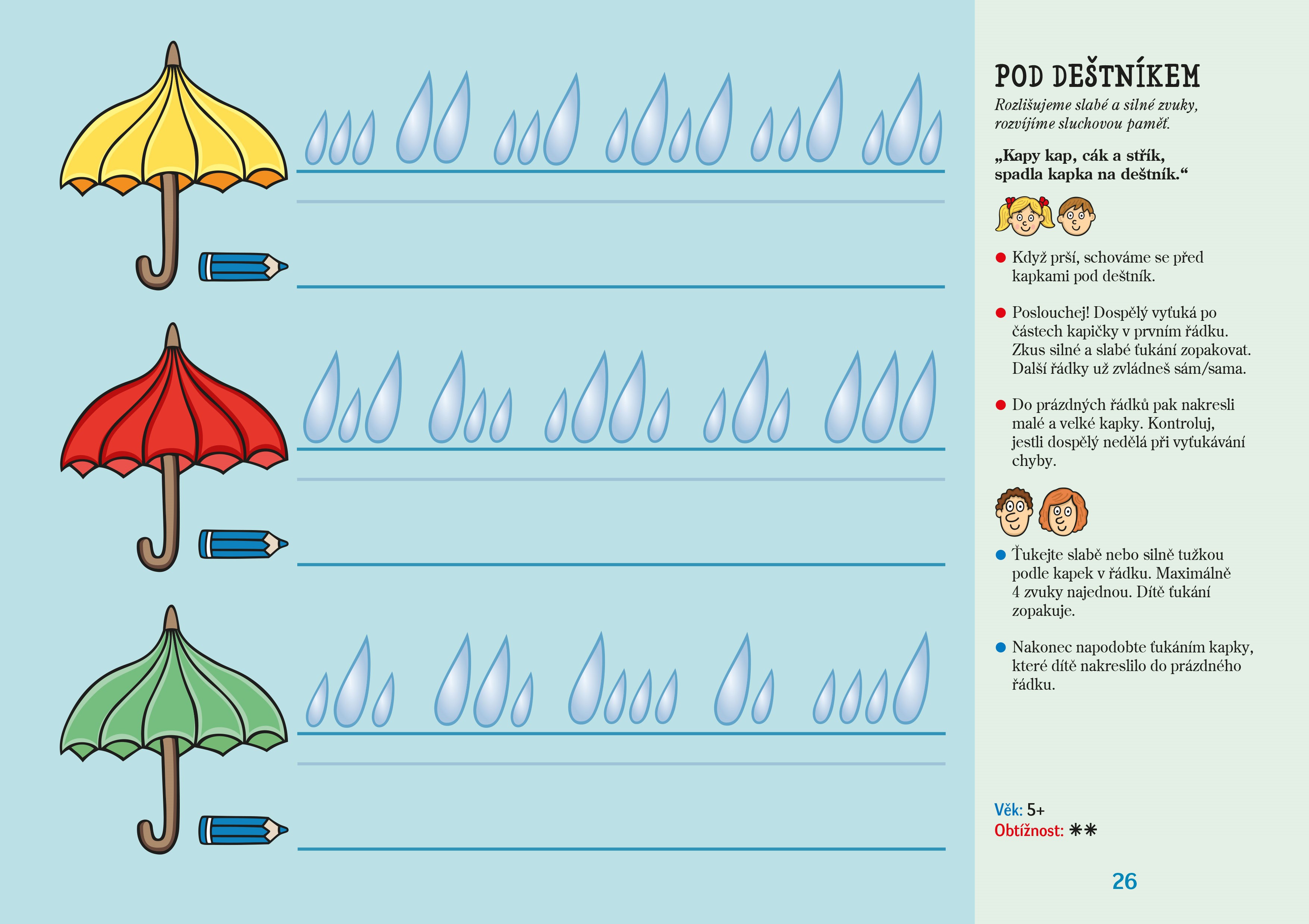 Kniha obsahuje originální hry a nápady pro rozvoj komunikačních dovedností dětí od 3 do 5 let. Mohou ji využít jak rodiče, tak učitelé v mateřských školách a logopedi, jak pro individuální práci s dítětem, tak pro práci s menší skupinou.