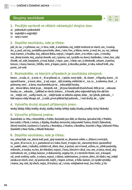 Publikace přináší přehledná cvičení ze středoškolského českého jazyka „v kostce“, tedy stručně, přehledně a názorně. Je určena studentům, ale nejen jim. Slouží k procvičení učiva v rozsahu přípravy ke státní maturitní zkoušce a obsahuje také rozšiřující cvičení například k přípravě na přijímací zkoušky na vysoké školy.