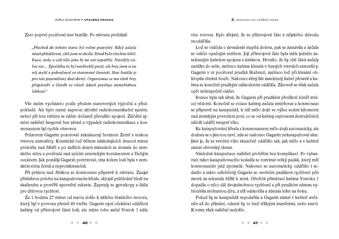Byl Jurij Alexejevič Gagarin hrdinou, nebo obětí mocenského systému, do jehož služeb se dal? A kolik nezodpovězených tajemství se s jeho osobou dodnes pojí? Až dočtete tuto knížku, možná zjistíte, že hledání odpovědí na tyto otázky jsou jedním velkým dobrodružstvím…