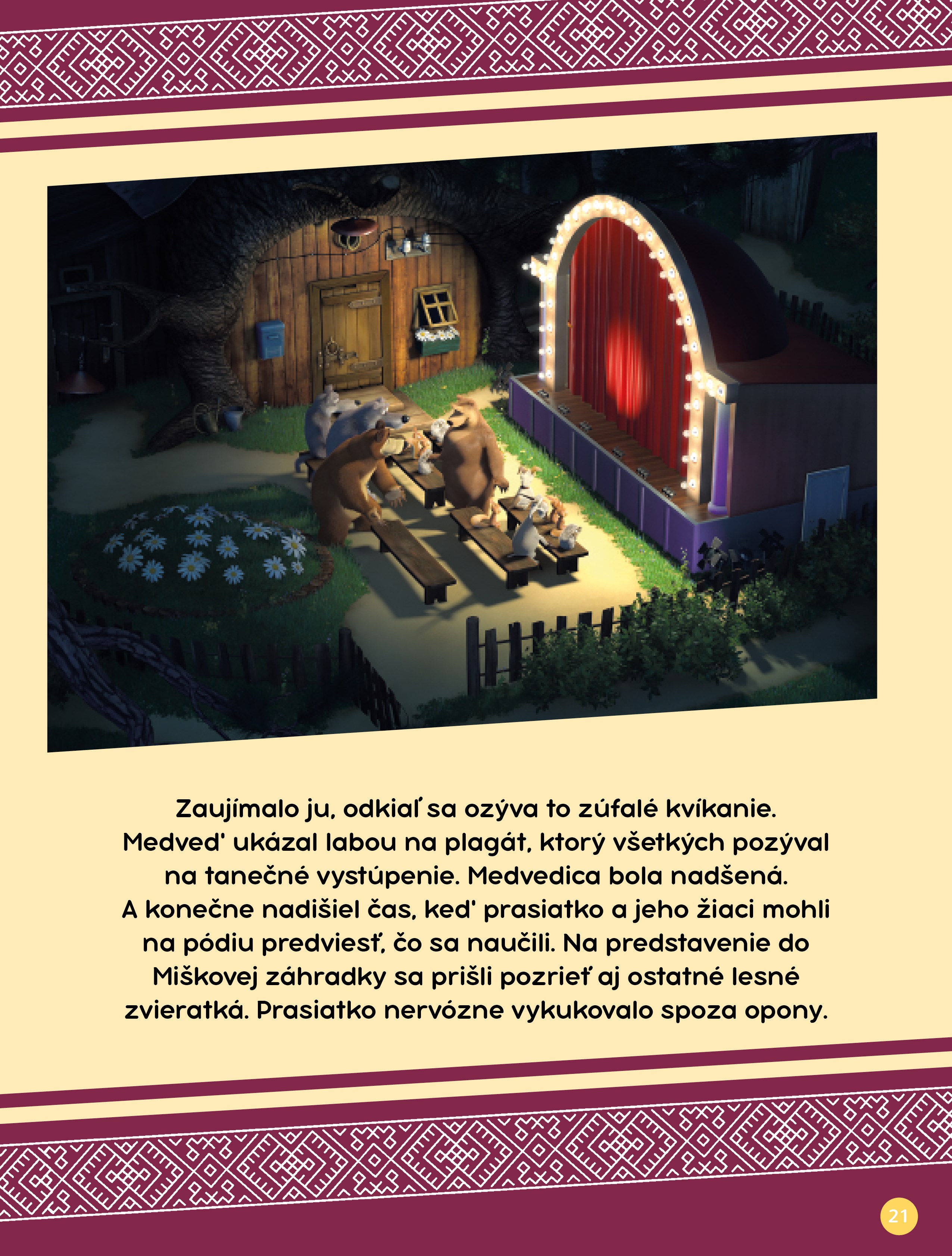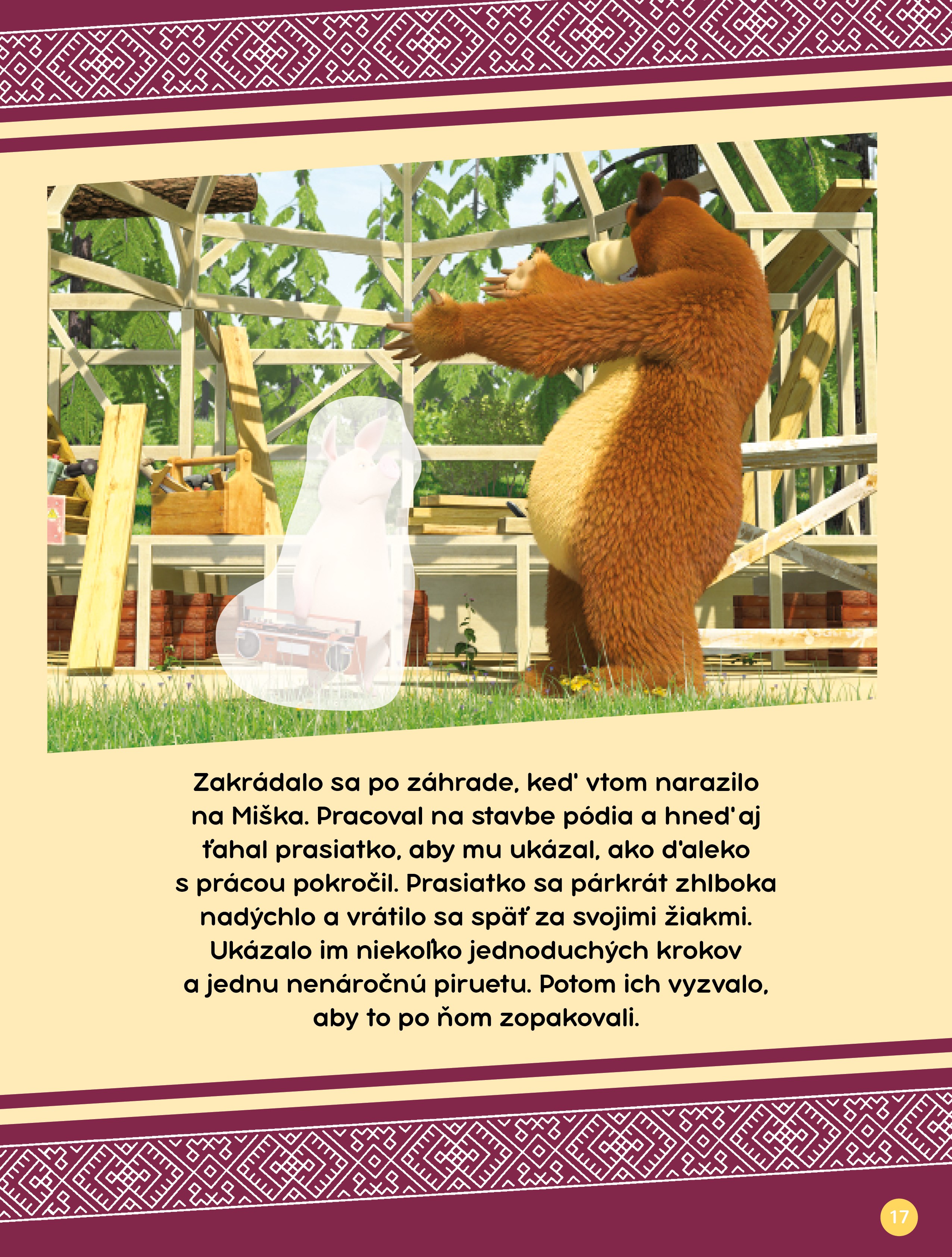 Prasiatko objaví svoj skrytý talent. Stane sa učiteľom tanca a hľadá nových žiakov. Medveď sa rozhodne poslať na tanečné hodiny Mášu a pandu. Chystá sa veľká šou na skutočnom javisku, s úžasnými kostýmami a… s Mášou a pandou v hlavných úlohách. Ako zvládnu malí huncúti tanečné vystúpenie? Je čas na ďalšie skvelé dobrodružstvo s Mášou a jej kamarátmi.
