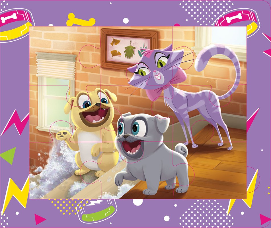Bingo a Rolly sú dva malé psíky, ktoré chvíľku neposedia. Pri ich huncútstvach im pomáha aj verná mačacia kamarátka Hissy. V tejto knižke nájdete krátky príbeh a tiež farebné puzzle, ktoré pomôžu deťom rozvíjať fantáziu, precvičiť si motorické schopnosti a priestorové vnímanie.